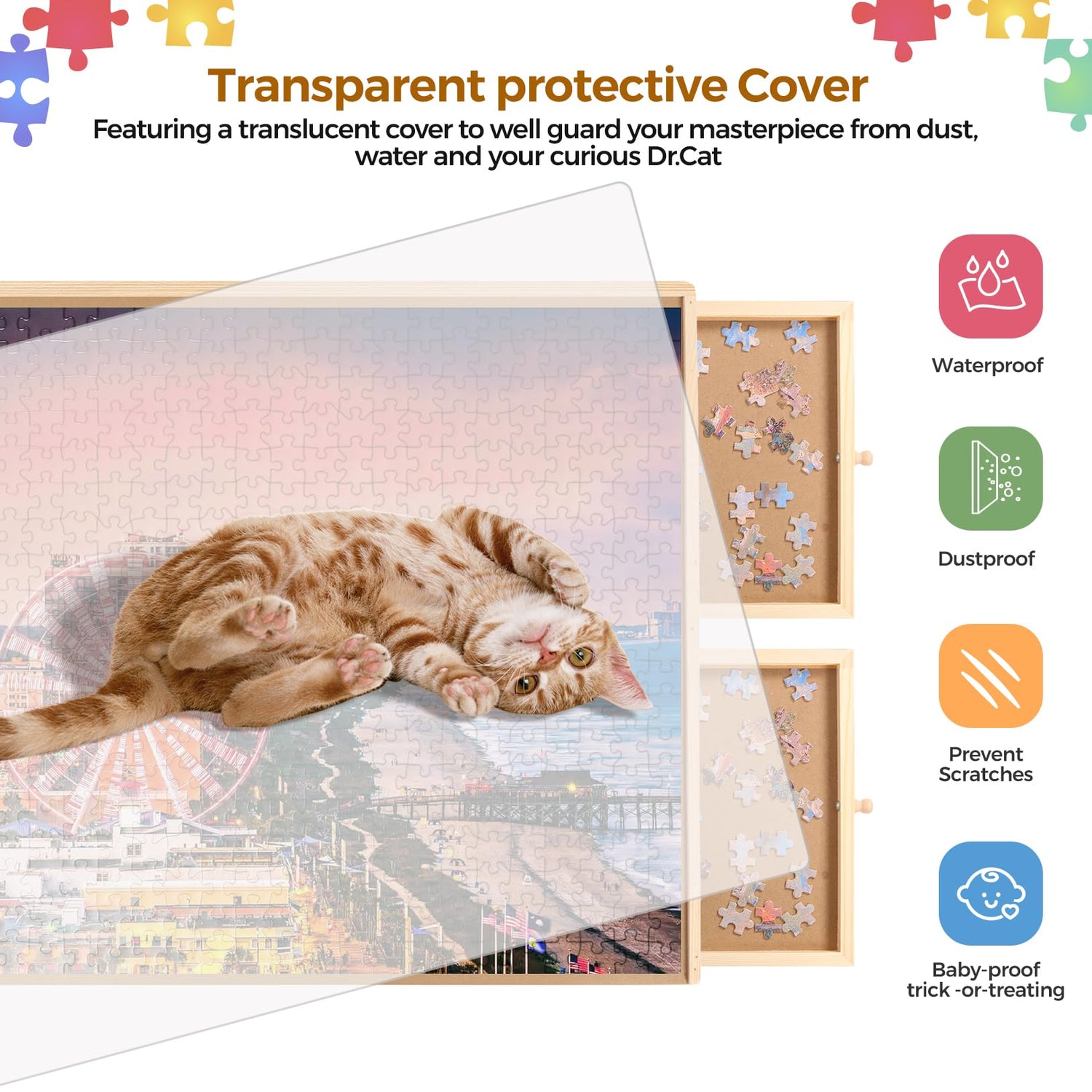 • 4 Drawers and Storage Cover: With 4 spacious drawers and a protective cover, this table keeps your puzzle pieces organized and safe. No more searching for lost pieces or dealing with clutter – everything stays neatly contained!