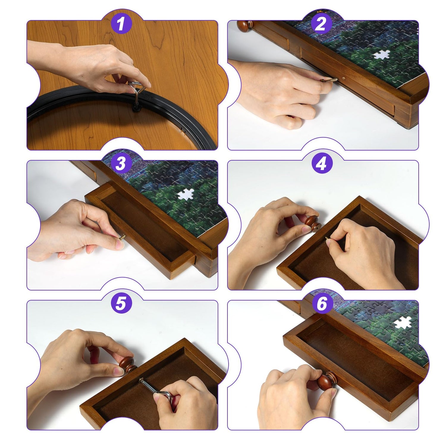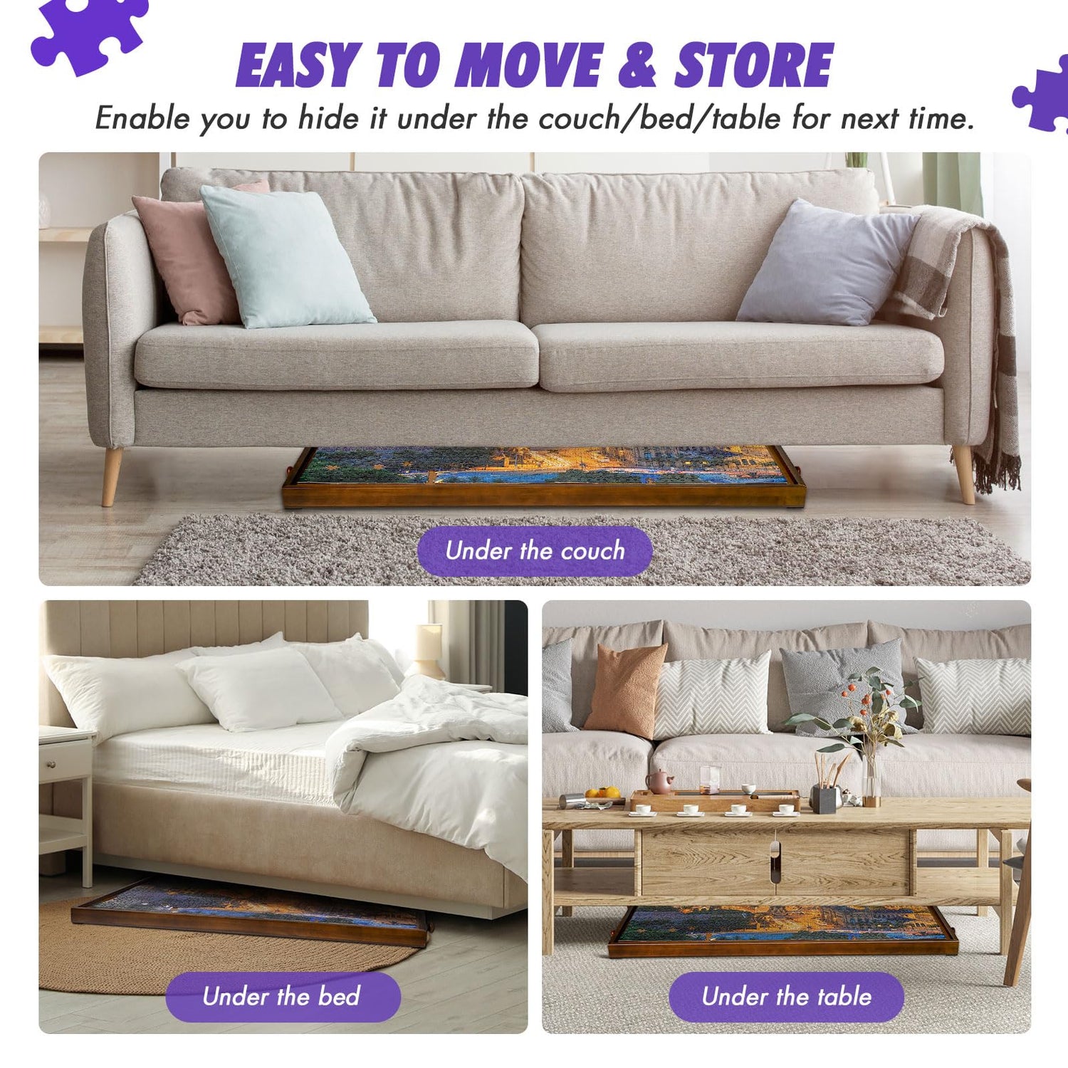 - đ§©ăLarge Capacity Puzzle BoardăThe ultimate design for all puzzlers. 36"x27" surface area fits most standard 1500 Piece Puzzles and other games. 6 SLIDING DRAWERS allow you to classify your works by color, theme or border. Every drawer is specially designed with Handle in order to ensure all the drawers stay closed when transportation, and safely keep the pieces from missing.