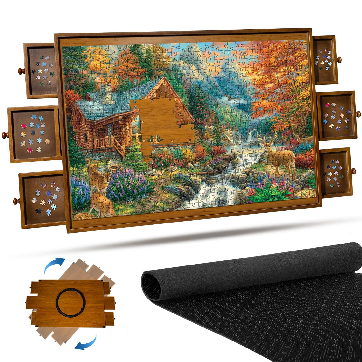 Sunix 1500 Piece Rotating Puzzle Board with 6 Drawers and Cover, 36"x26" Portable Wooden Jigsaw Puzzle Table for Adults & Kids, Premium Smooth Work Surface, Spinning Puzzle Board Birthday Gift for mom