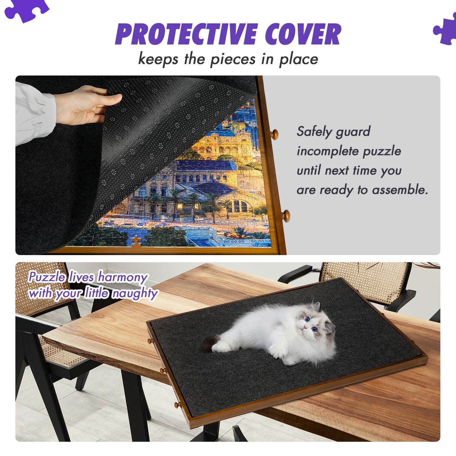 - đ§©ă5s Easy to Move & Storeă Simply cover your puzzle with PUZZLE COVER and put it away when you want to take a break to protect your puzzles from dust, water, and pets. Easy lift, lightweight and balanced for quick storage. In a matter of seconds, you can cover your puzzle boards with the unique Sunix Jigsaw Puzzle Mat and tuck it away under a couch or bed for safekeeping.