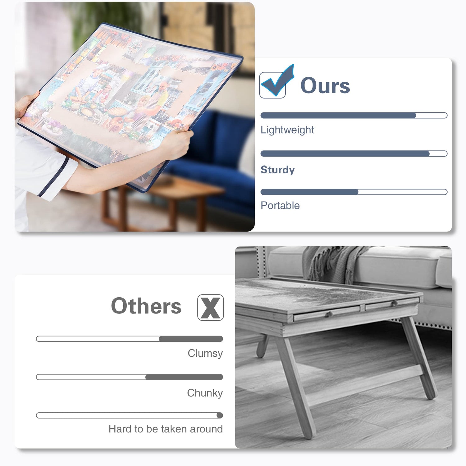 - Lightweight & Portable - The puzzle board is sturdy and durable, allowing you to move it around effortlessly and secure your unfinished puzzle game. You may store it safely under the couch or bed to save plenty of space.