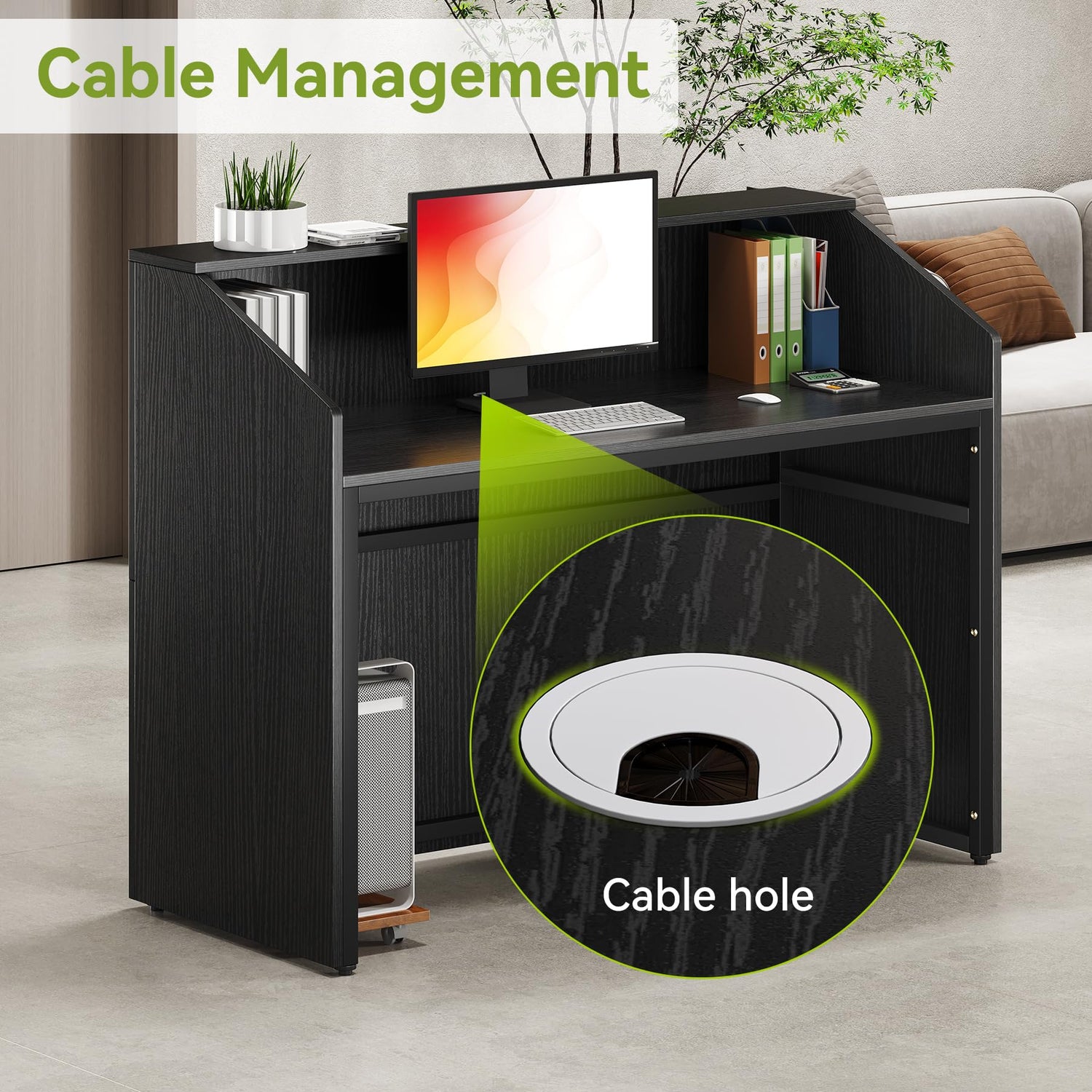 LITTLE TREE 47-Inch Reception Desk with Counter, Black Front Desk Reception Room Table, Retail Counter for Checkout, Modern Welcome Desk for Lobby, Office, Beauty Salon