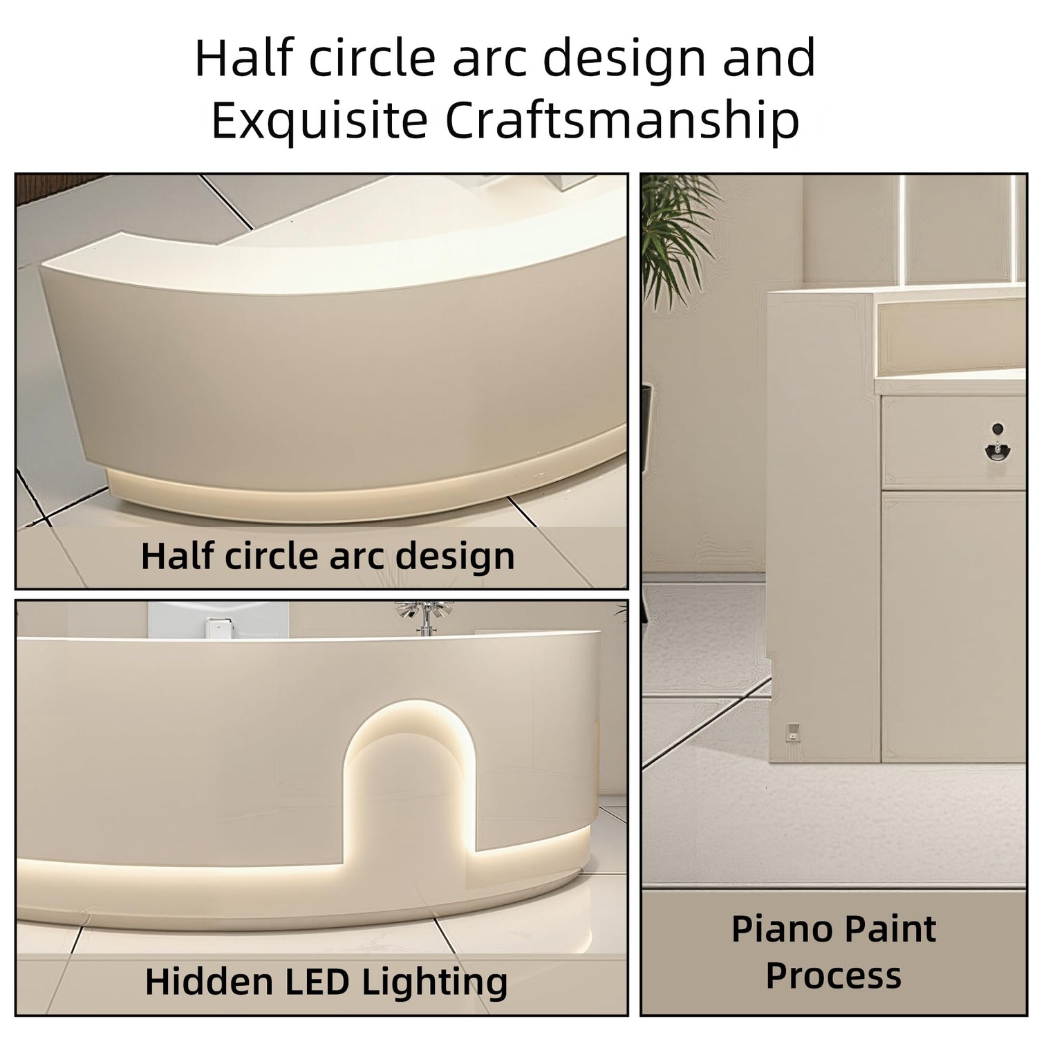 - Curved design, enveloping design, white piano lacquer finish, paired with curved lines, bringing visual impact to your reception work.