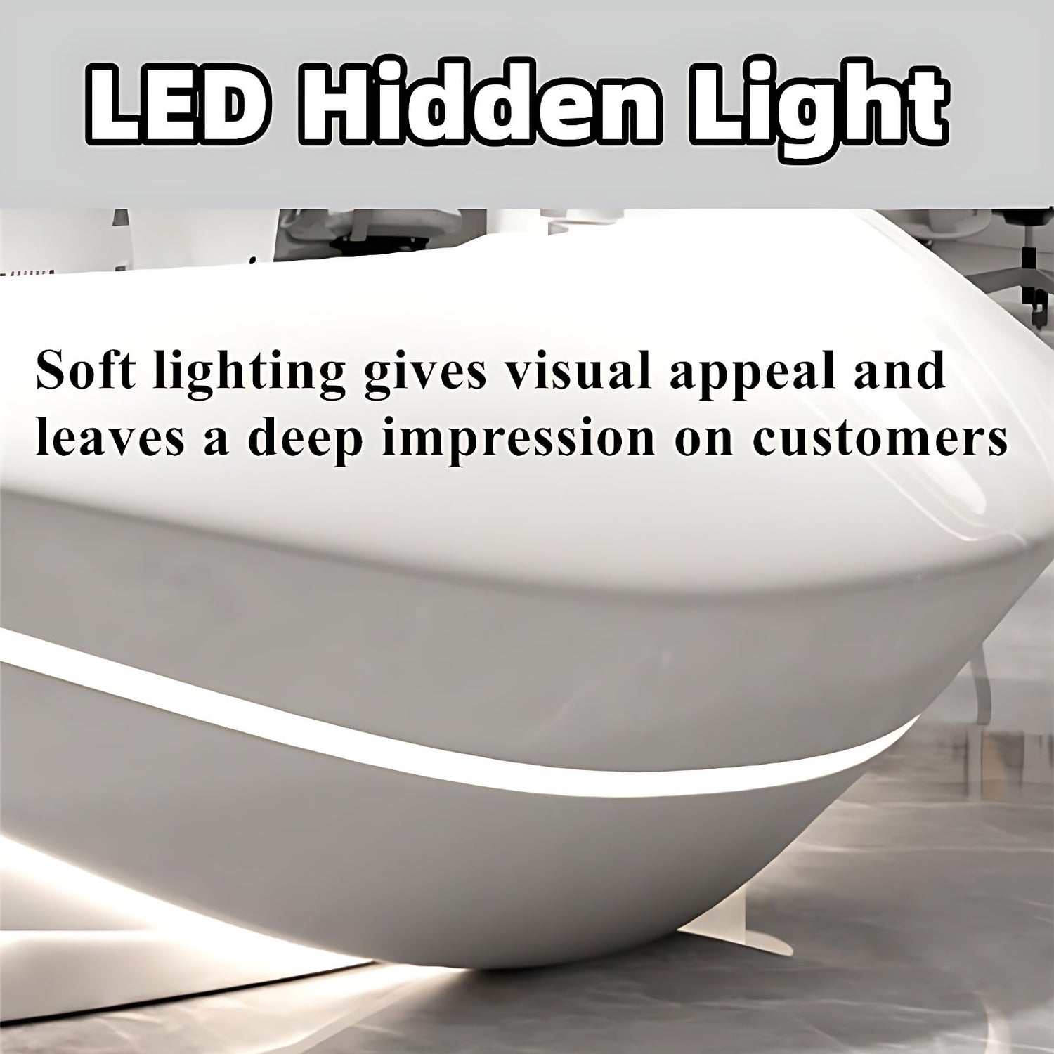 - Integrated Hidden LED Lighting: Featuring soft LED lighting seamlessly embedded into the reception counter, this desk creates an inviting ambiance. The smooth lines and minimalist aesthetic enhance the visual appeal of any front desk reception counter or workspace.