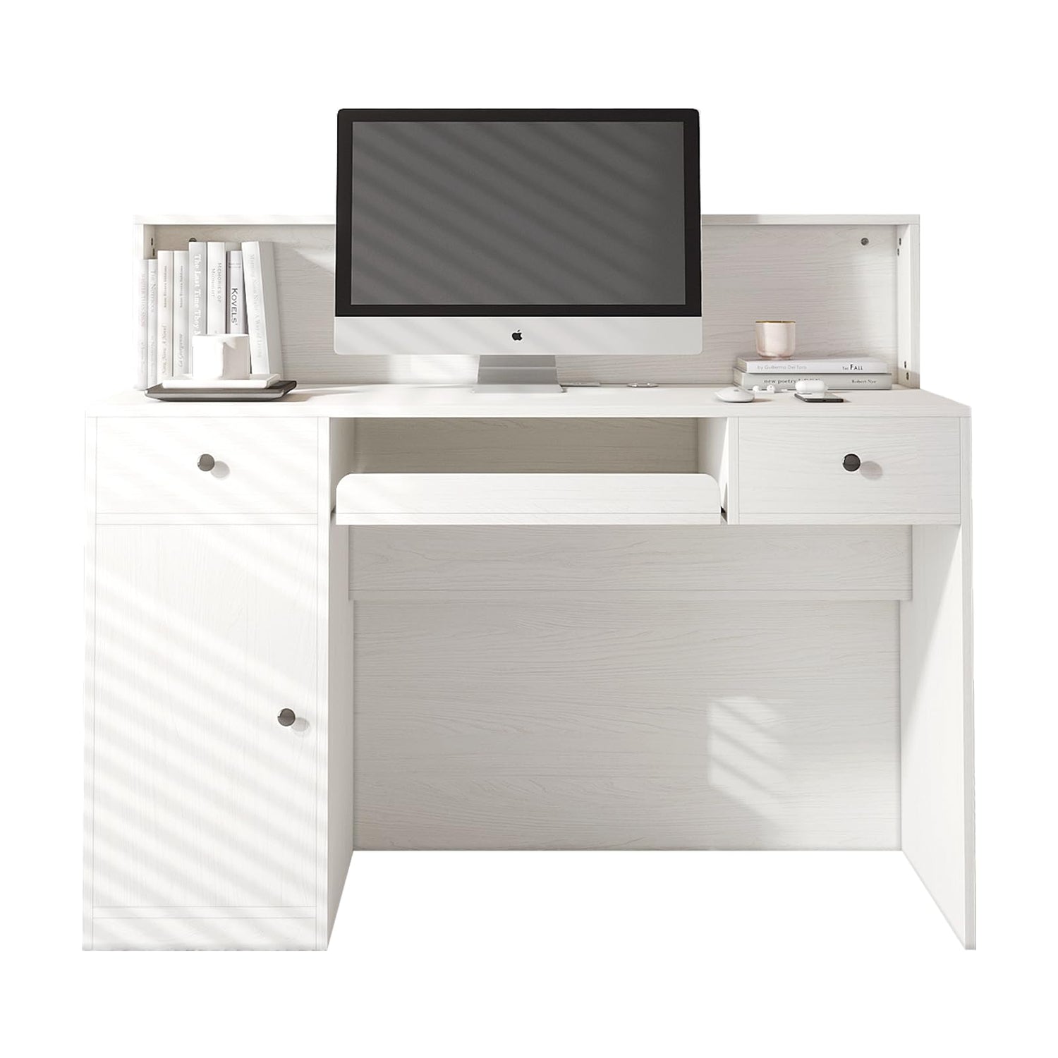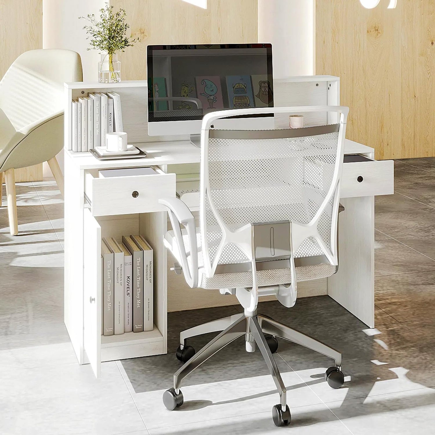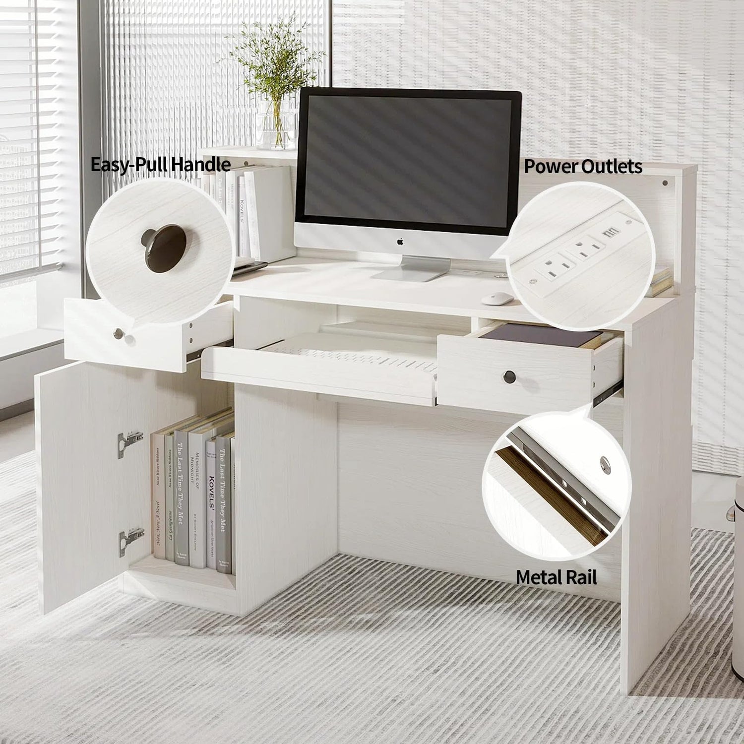 - [Ample Storage Space]: This reception desk is not only aesthetically pleasing, but also designed with plenty of space for your daily business needs. The large tabletop and well-designed storage make it easy to keep your personal items in place. With desktop dimensions of 47.2 ‘L x 19.7 ’W, there's plenty of room for your computer, cash register and even promotional materials. Comes complete with keyboard tray, retail counter, 2 drawers and a small cabinet to store filing materials and folders to keep your desk tidy.