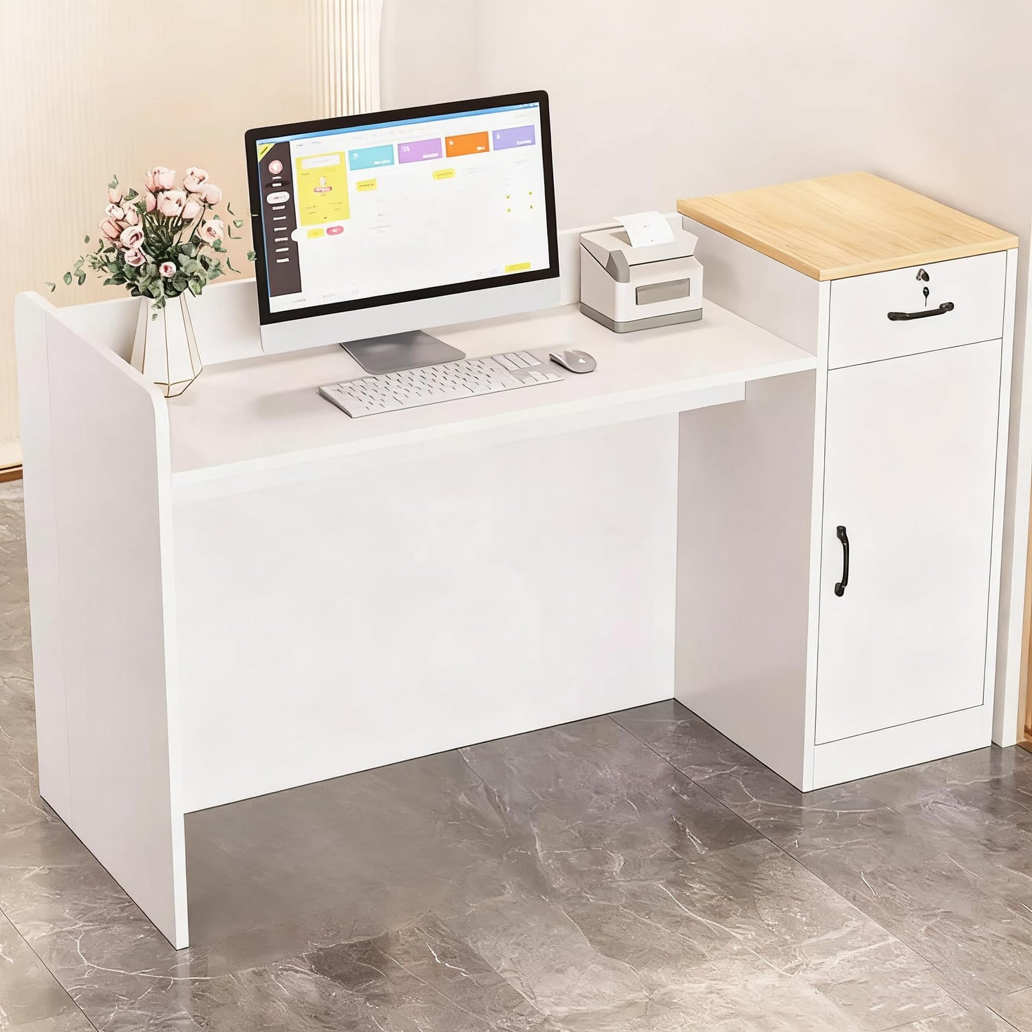 Small Reception Desk, Retail Counter with Outer Display Shelf & Lockable Drawer, Modern Front Desk Reception Room Table, Checkout Table for Lobby, Shop, Home Office (Right Hand Cabinet, 39.37 in)