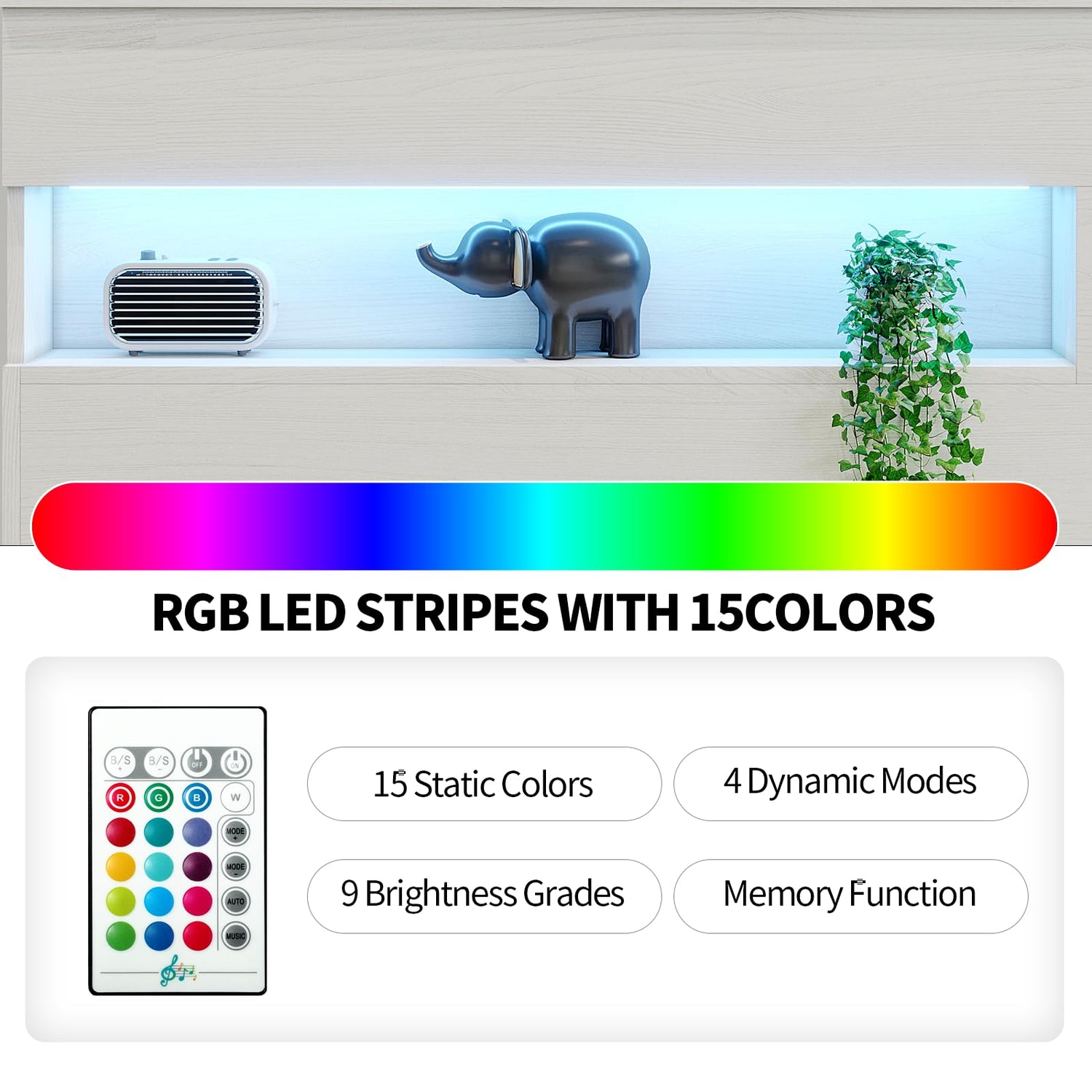 - [Vibrant RGB LED Lighting]: Say goodbye to boring lighting! These RGB LED strip lights go beyond standard LEDs, offering 15 stunning static colors, 4 dynamic modes, and 9 brightness levels—all with a handy memory function—ideal for setting the right mood, whether you want a sleek professional vibe or an eye-catching display.