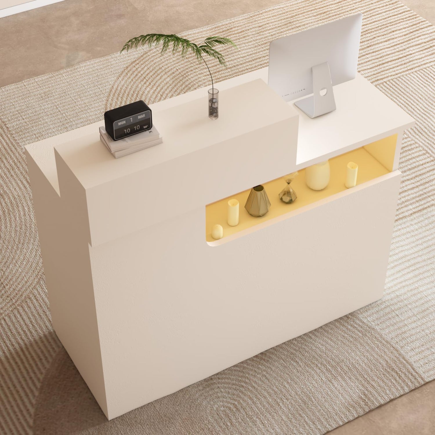 • Mood-Setting LED Light: Integrated LED light along the front counter creates a professional, welcoming vibe — ideal for salon reception desks or trendy showrooms.