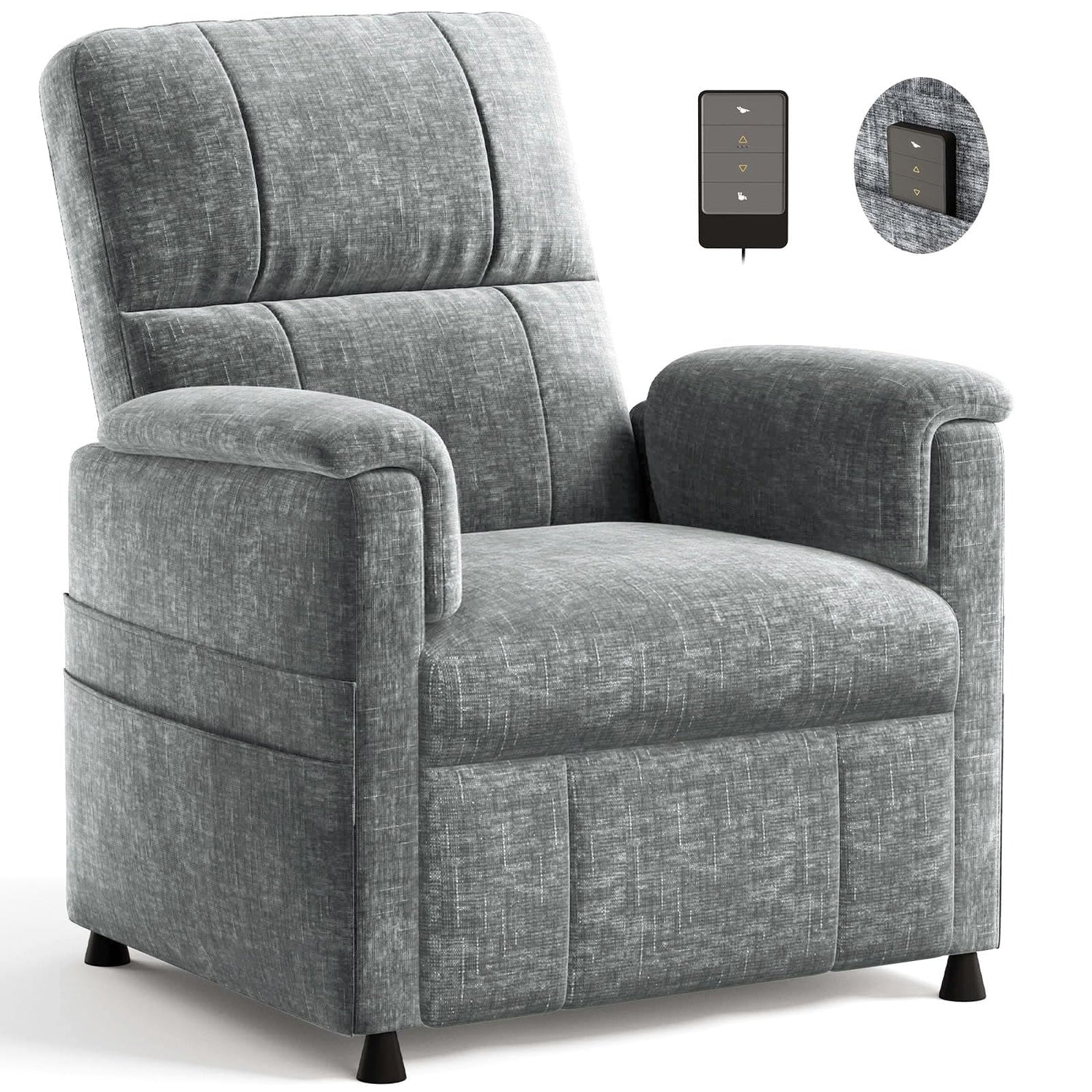 - 【Life Details・Convenience Plus】: The electric recliner comes with a remote control featuring an extendable cord. Independent storage pockets on both armrests hold small items like the remote or magazines, keeping clutter at bay. Built-in US standard wide voltage design (110V-240V) adapts to multiple voltage environments for worry-free use