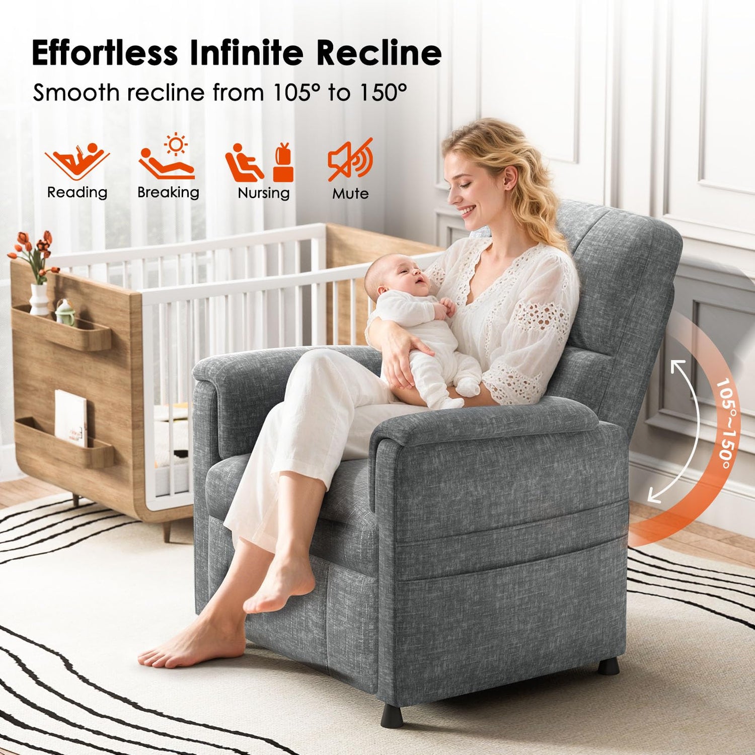 - 【Quick Assembly, Thoughtful Gift】: The recliner chairs comes with a full set of assembly components and clear instructions, allowing you to easily assemble and enjoy the comfort experience immediately. Its excellent comfort also makes it a thoughtful gift for friends and family, conveying comfort and warmth to those who matter most