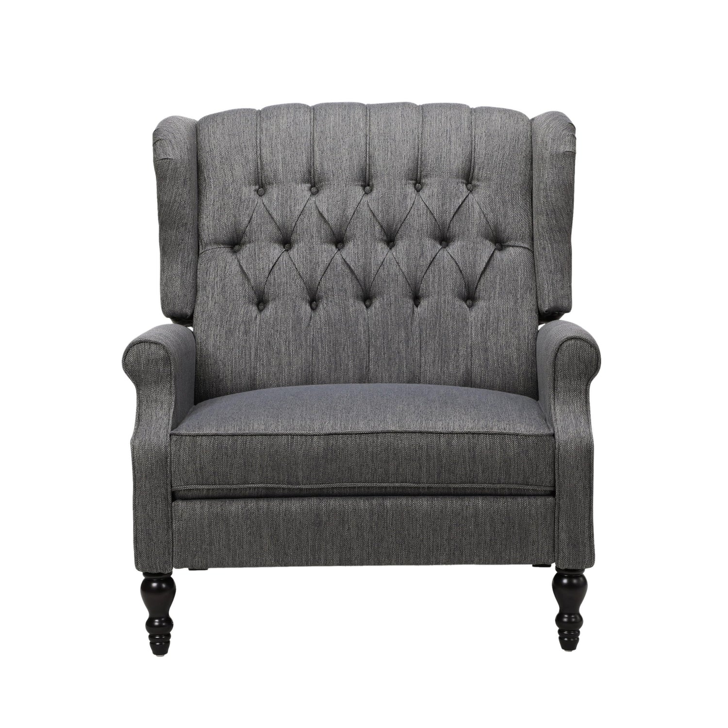 - Pushback reclining for easy manual recline for customizable comfort. Button tufted backrest with waffle stitching adds texture and sophistication. Modern wingback style blends traditional design with a contemporary touch. Graceful scroll arms add a touch of luxury with unmatched elegance.