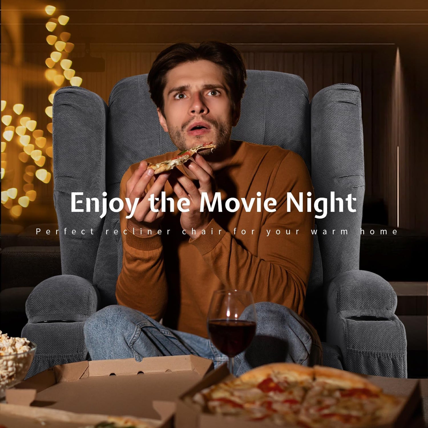 BINGTOO Electric Power Recliner Chair with Massage & Heat - Ergonomic Wingback Lounge Sofa Chair for Living Room, Home Theater Seating & RV with LED Light/Cup Holders/USB Ports, Grey