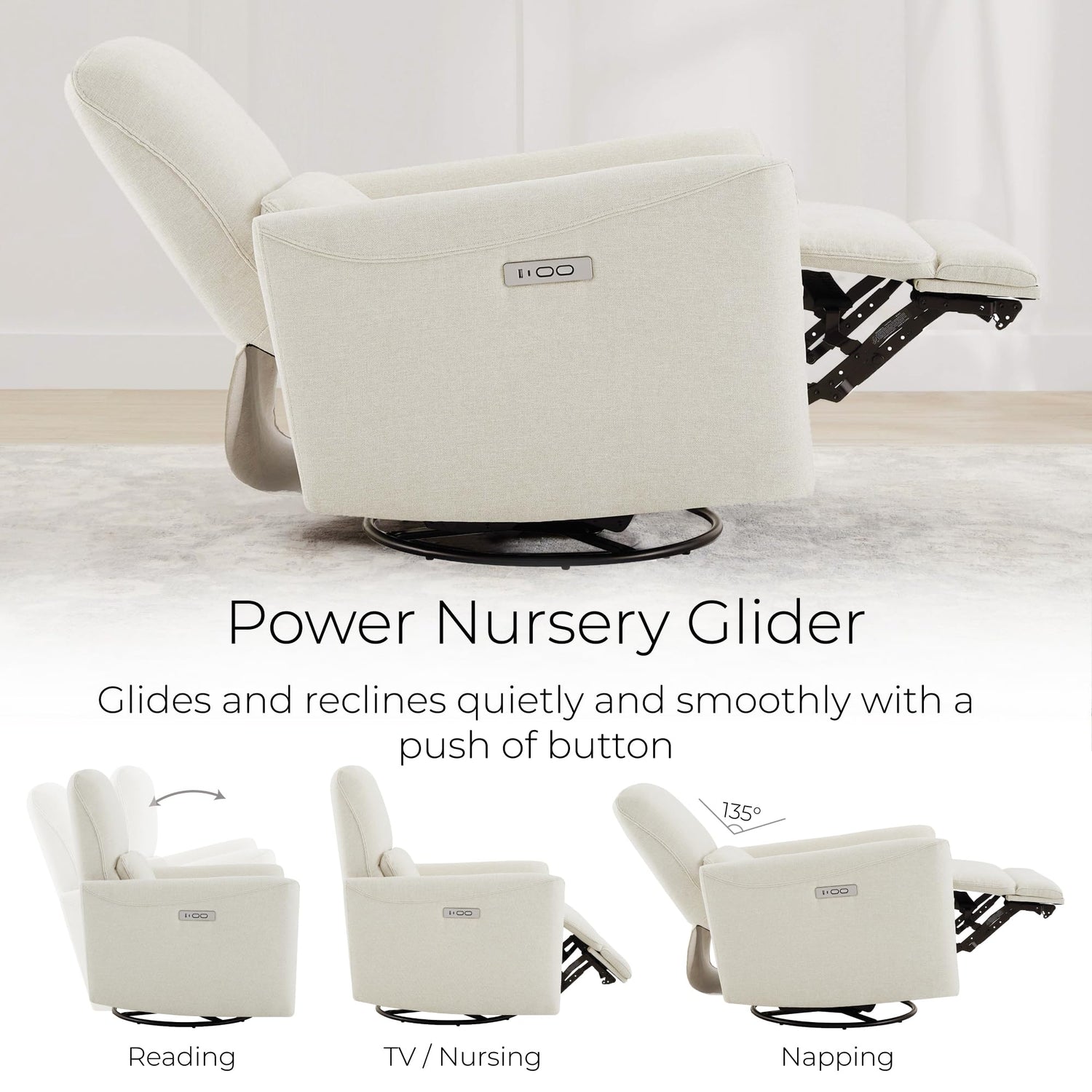 CHITA Power Recliner Chair Swivel Glider, FSC Certified Upholstered Living Room Nursery Reclining Sofa Chair with Lumbar Support, Linen