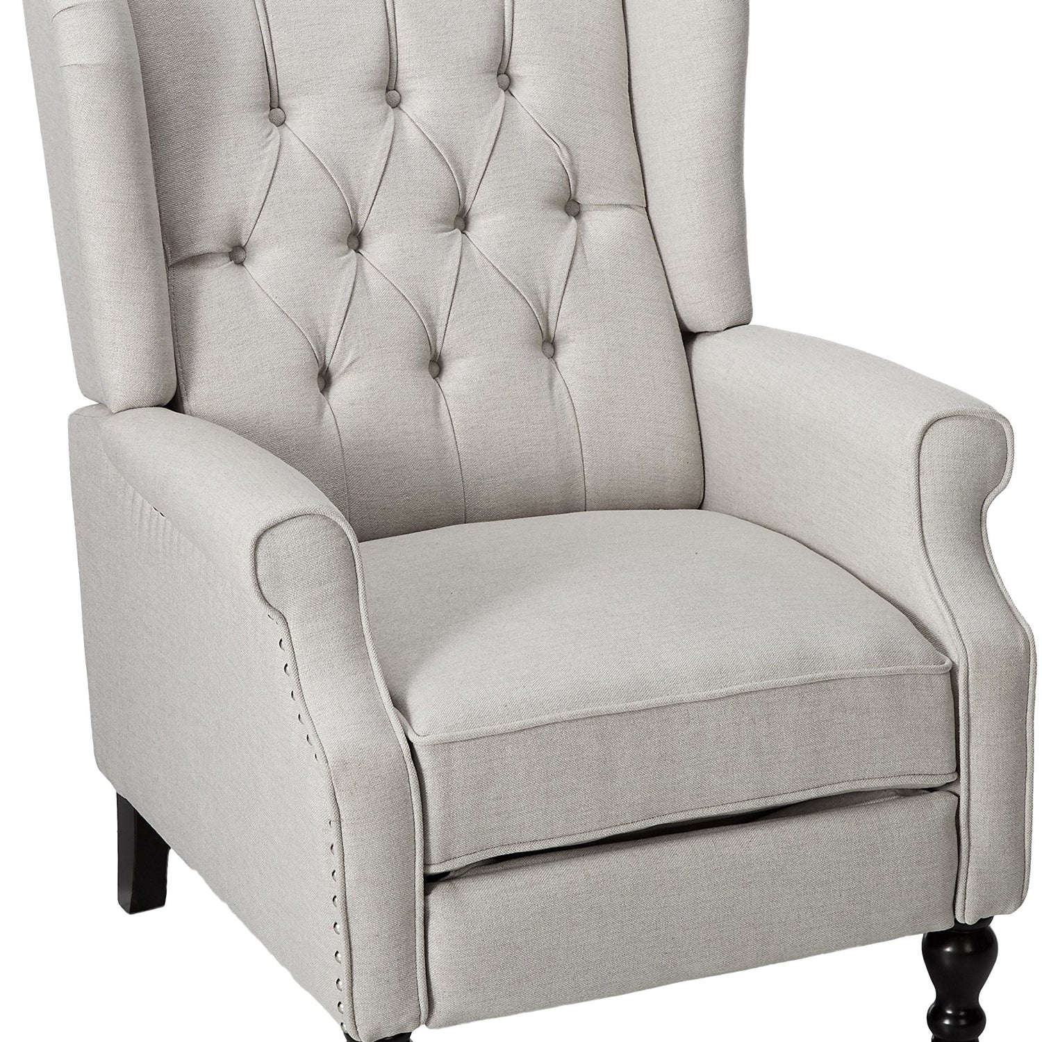 - The Elizabeth Recliner with tufted back will make a statement in any room of your home; The shape and height of the back command attention while the armrests and cushioned seat allow for comfort; Perfect for entertaining or relaxing while offering an intelligent design touch to your home
