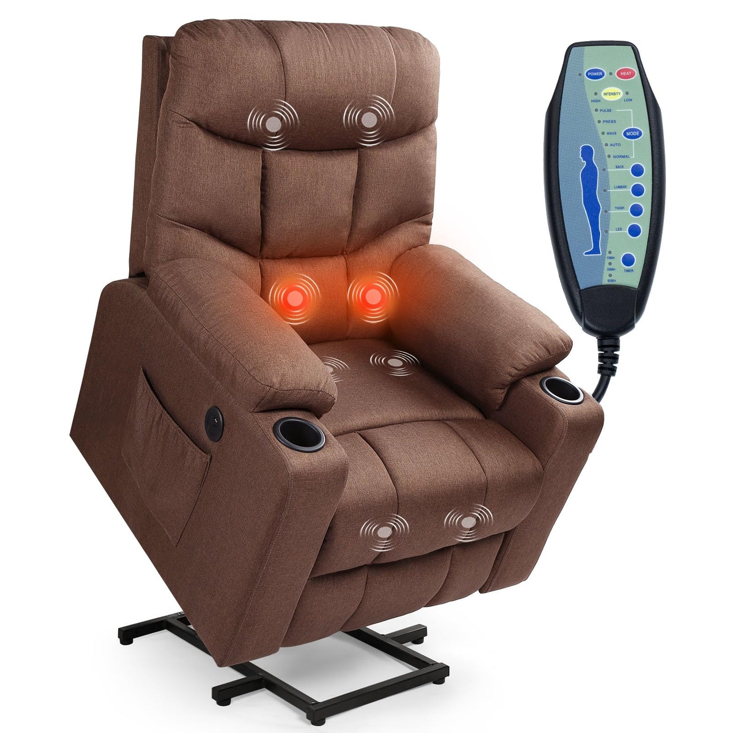Esright Power Lift Recliner for Elderly, Electric Lift Chair with Heated Vibration Massage,Heavy Duty Electric Recliner with Side Pockets, USB Charge Port & Cup Holders, Brown