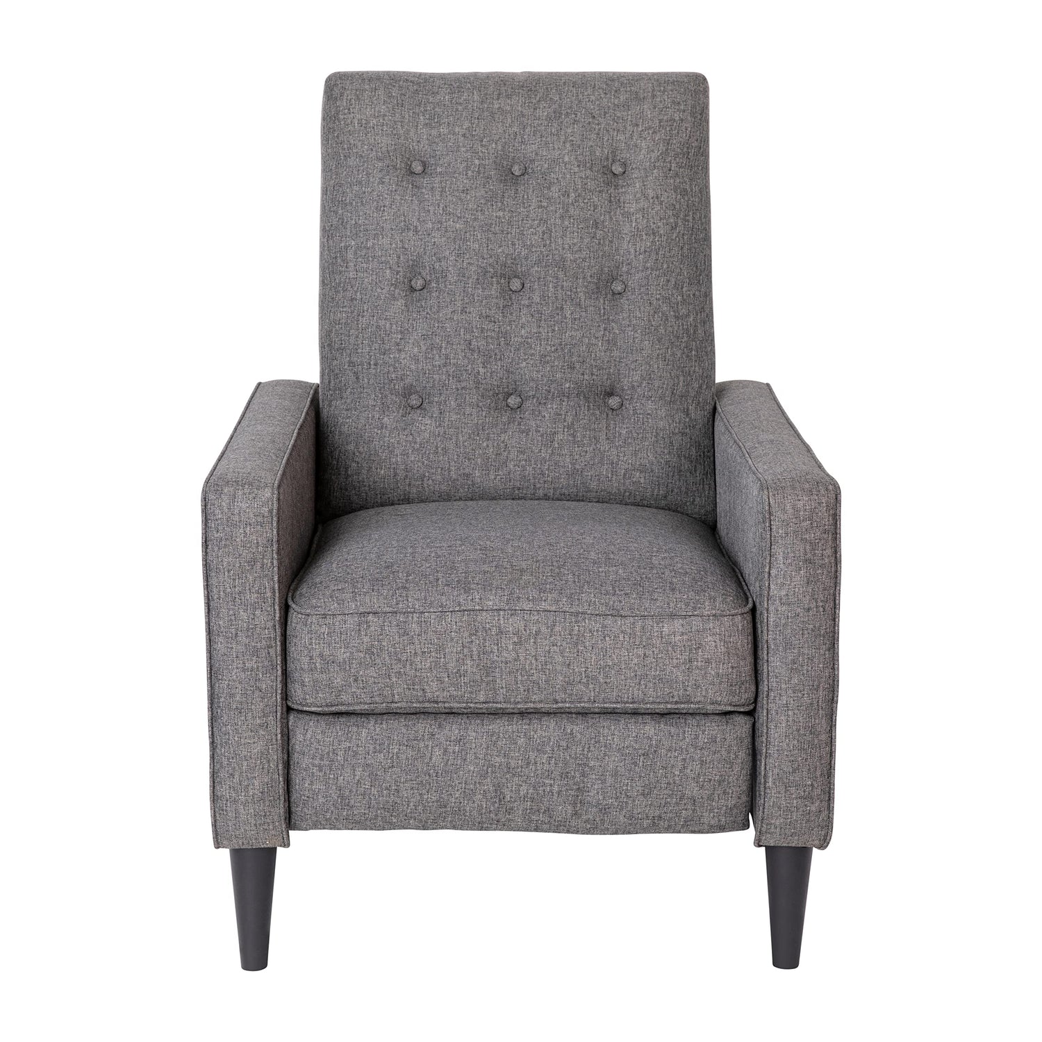 Flash Furniture Ezra Ezra Pushback Recliner - Mid-Century Modern Gray Fabric Upholstery - Button Tufted Back - Residential & Commercial Use