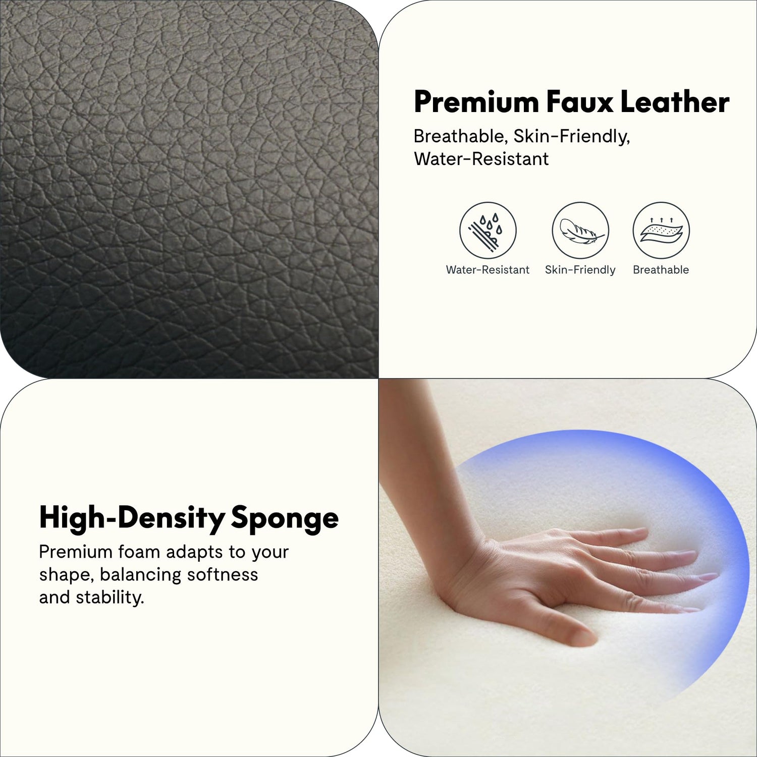 - 【Premium Faux Leather Upholstery】Wrapped in skin-friendly faux leather that’s water-resistant, breathable, and wear-resistant. The buttery-soft texture adds luxury, while the sturdy metal base supports up to 300 lbs, ensuring long-lasting stability and reliability for everyday use.