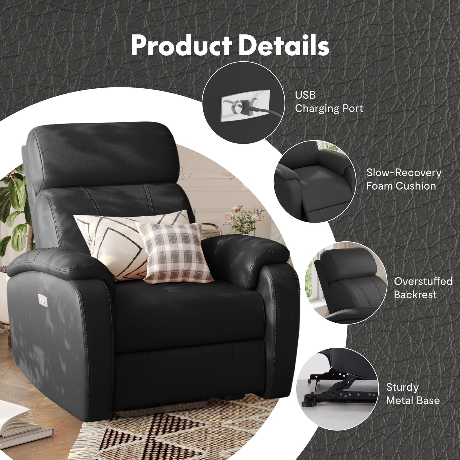 - 【USB Charging Port】Keep your devices powered while you relax. The built-in USB charging port makes it easy to charge phones, tablets, or e-readers, so you’ll never miss a moment of entertainment or work.