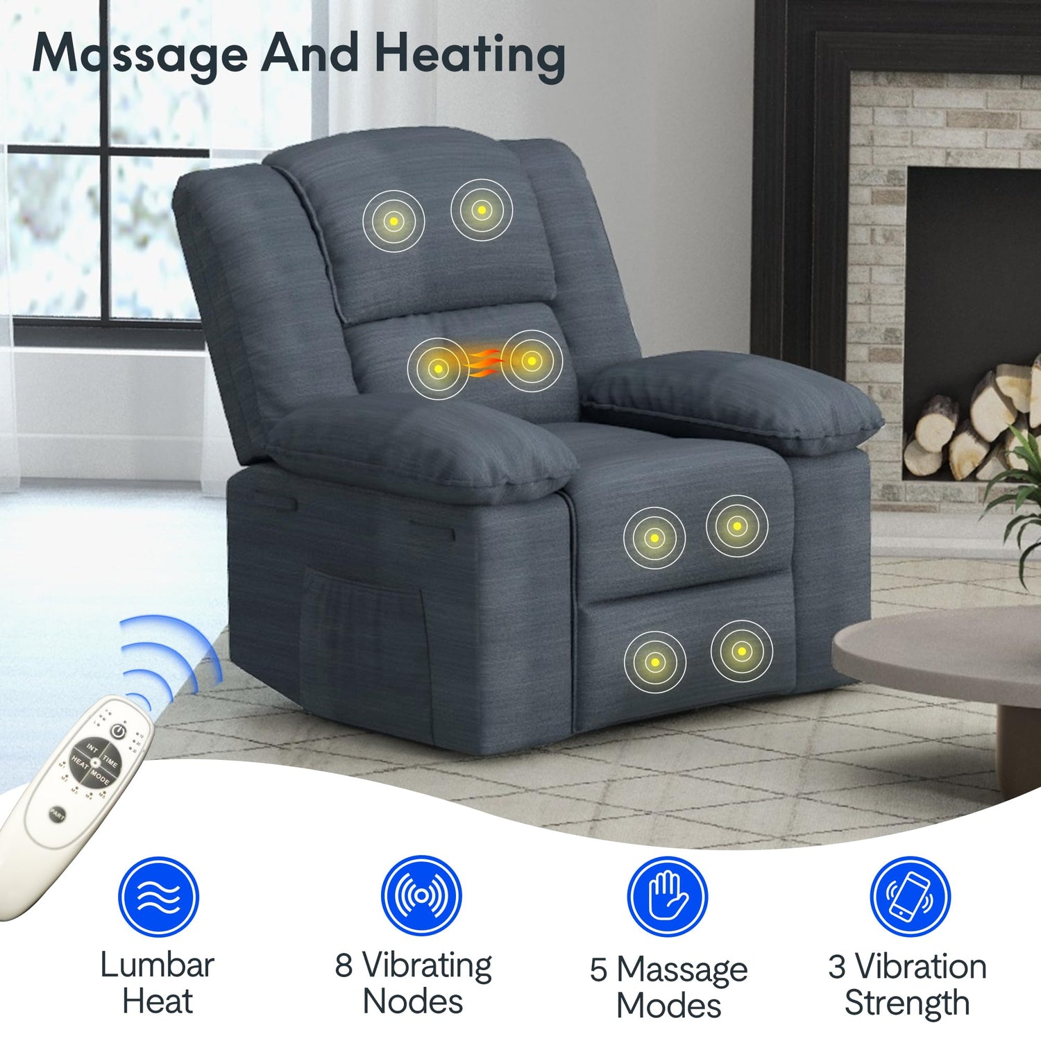 • 【Massage and Heating】- The FLEXISPOT massage recliner chair features 8 powerful massage points, 5 massage modes, and 3 intensity levels, plus a cozy warming function that eases your stress in just 10 minutes.