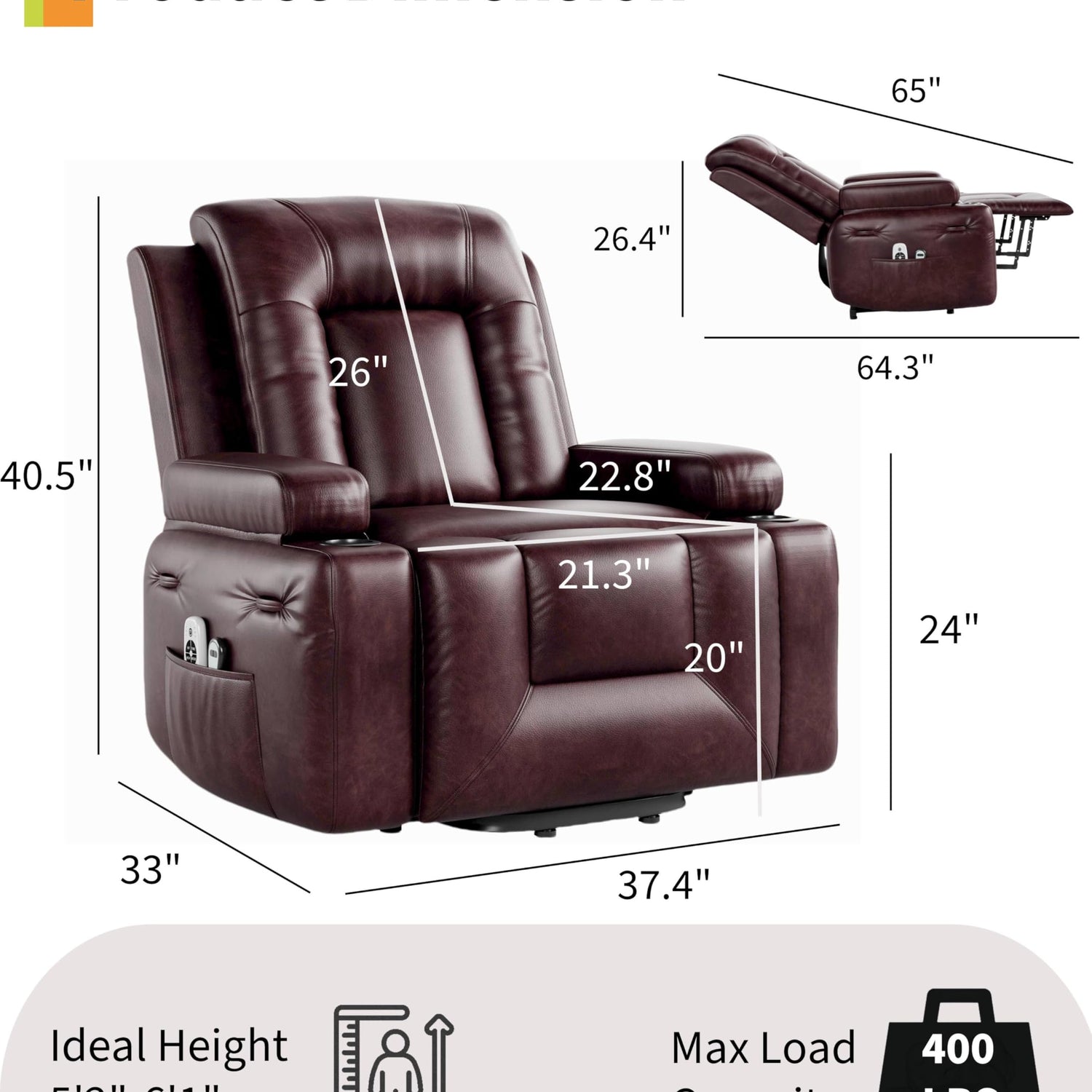 - 【Product Dimensions】The Power Lift Recliner Chair measures 38.6 x 37.4 x 40.6 inches, seat width: 21.3 inches, weight capacity:400 lbs, making it a sturdy and spacious choice for seniors and those with limited mobility