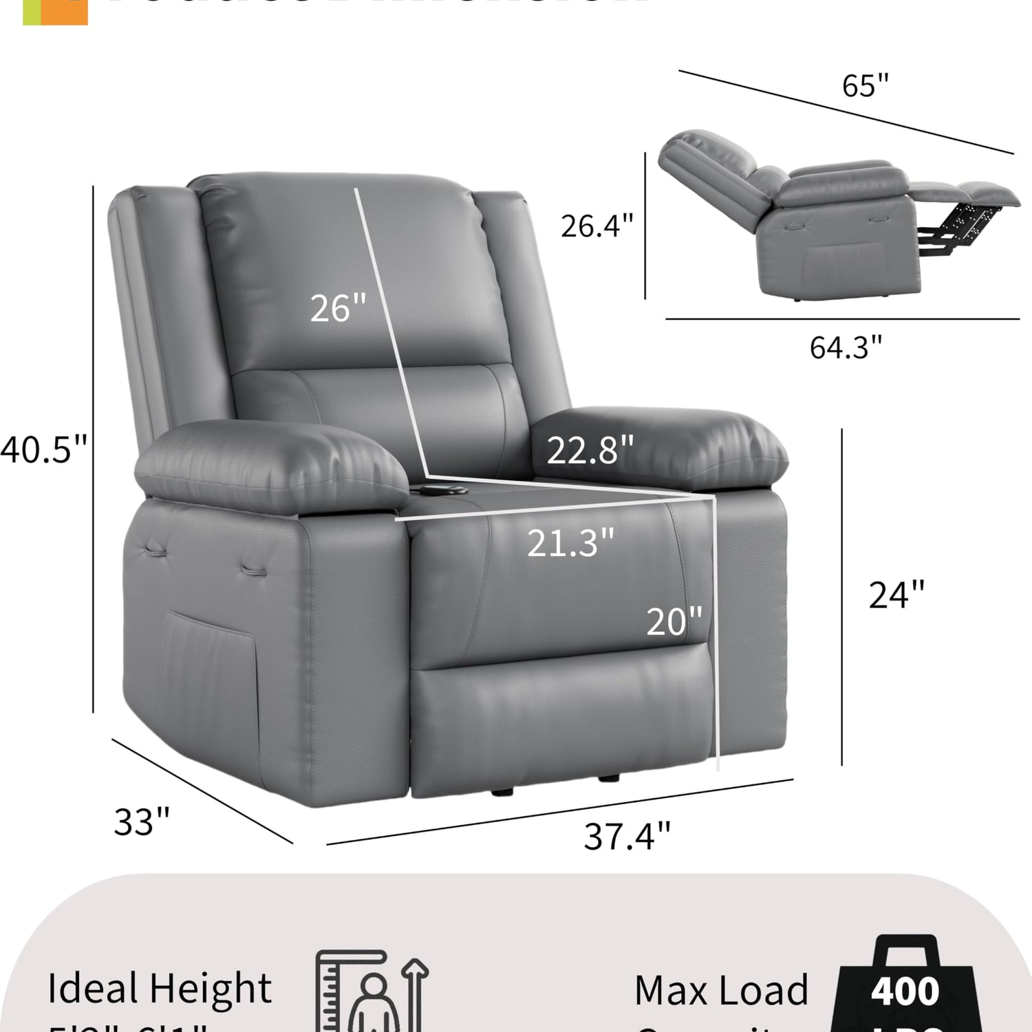 - 【Product Dimensions】The Power Lift Recliner Chair measures 38.6 x 37.4 x 40.6 inches, seat width: 21.3 inches, weight capacity:400 lbs, making it a sturdy and spacious choice for seniors and those with limited mobility