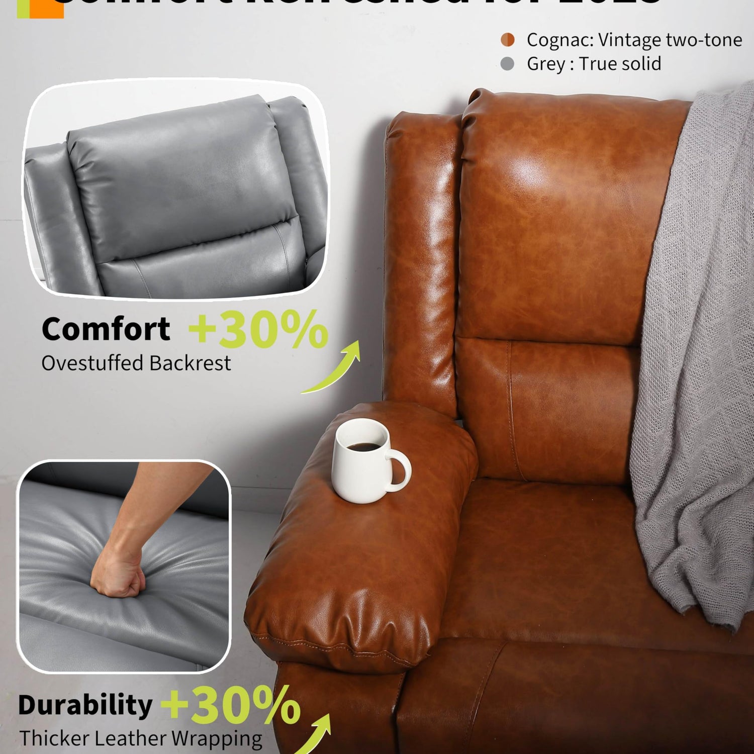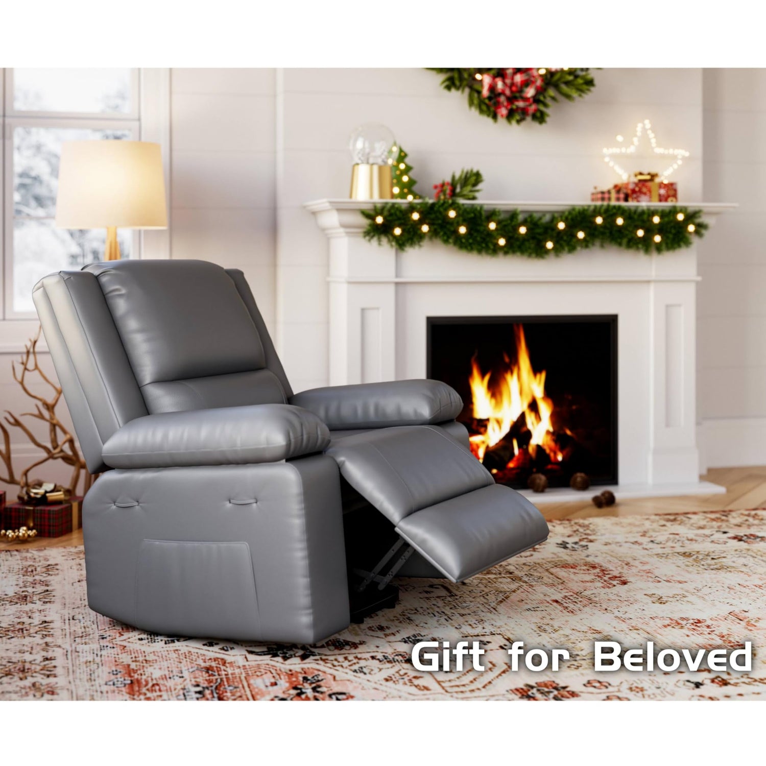 - 【Premium Quality Materials】Crafted from high-quality faux PU leather, this recliner is both wear-resistant and waterproof, ensuring long-lasting durability. The robust metal frame provides a solid foundation, guaranteeing safety and stability for daily use