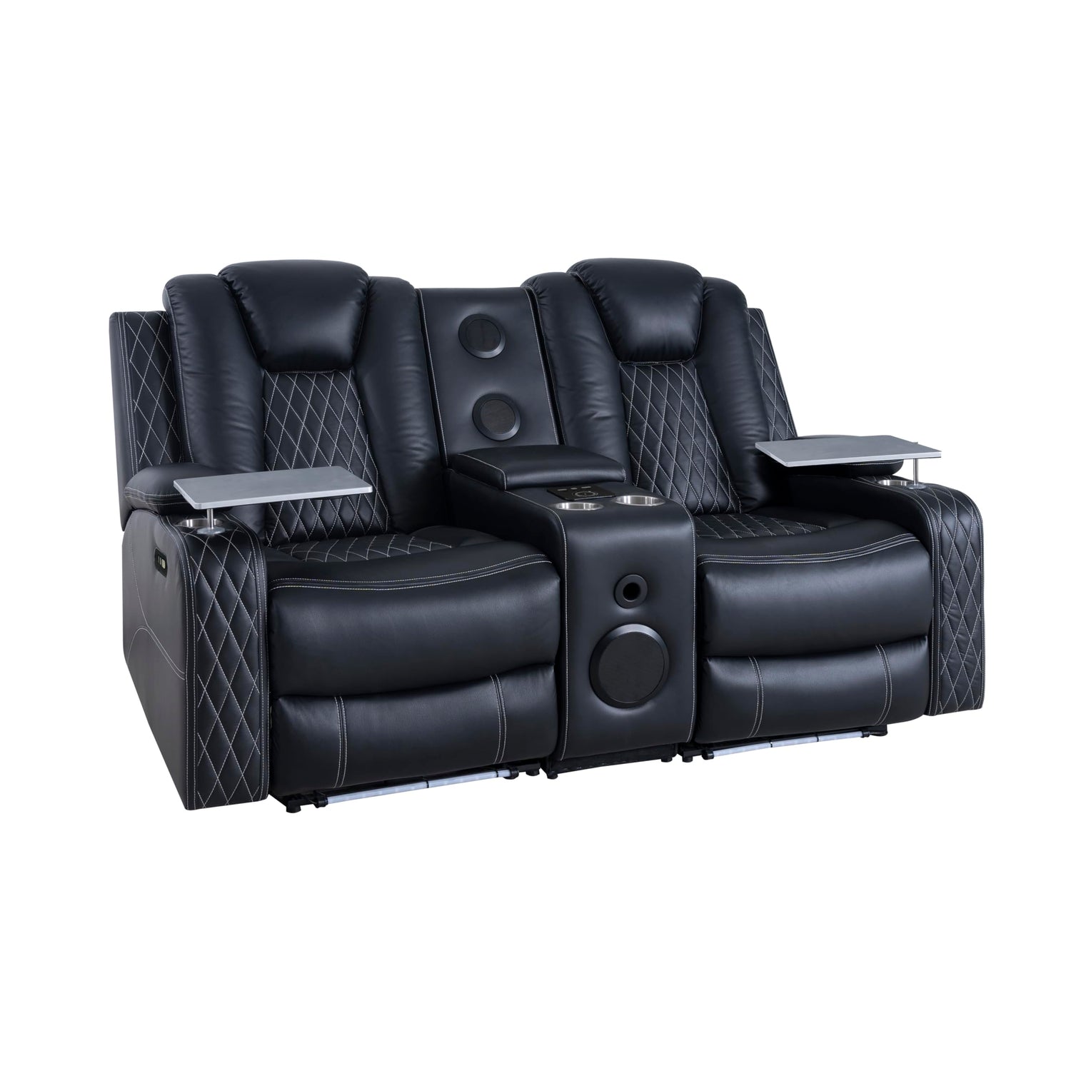Home Theater Seating, Gaming Chairs for Adults, Wireless Charging Movie Theater Chairs, Power Recline Loveseat with 6 Cup Holders and Tray, Powerful in-Built Speaker, USB Ports, Air Leather – Black