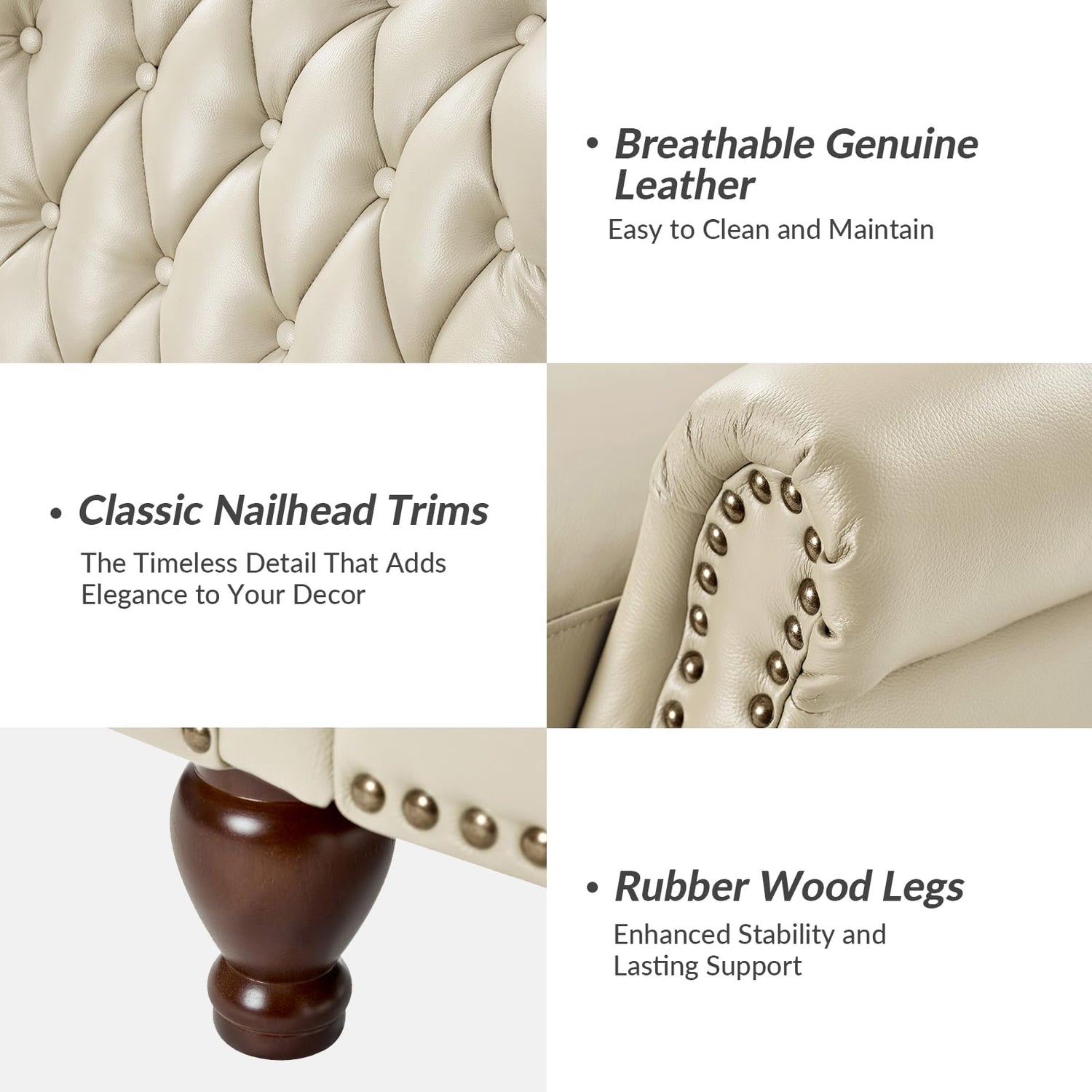 HULALA HOME Genuine Leather Recliner Chair with Solid Wood Feet, Modern Adjustable Tufted Push Back Arm Chair w/Rivet Decoration, Home Theater Seating Single Reclining Sofa for Living Room, Beige
