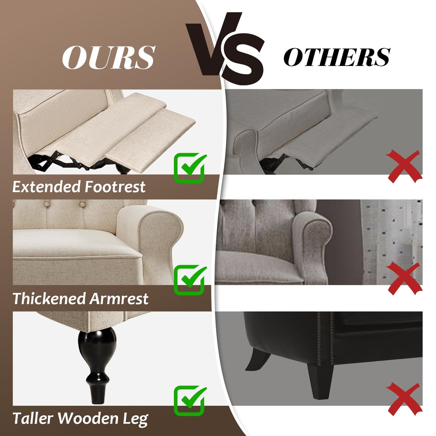 - Relaxation Redefined: Experience comfort in our wingback push back recliner chair. Effortlessly lean back, pop out the footrest, and unwind – perfect for movie nights, napping, or getting lost in a good book