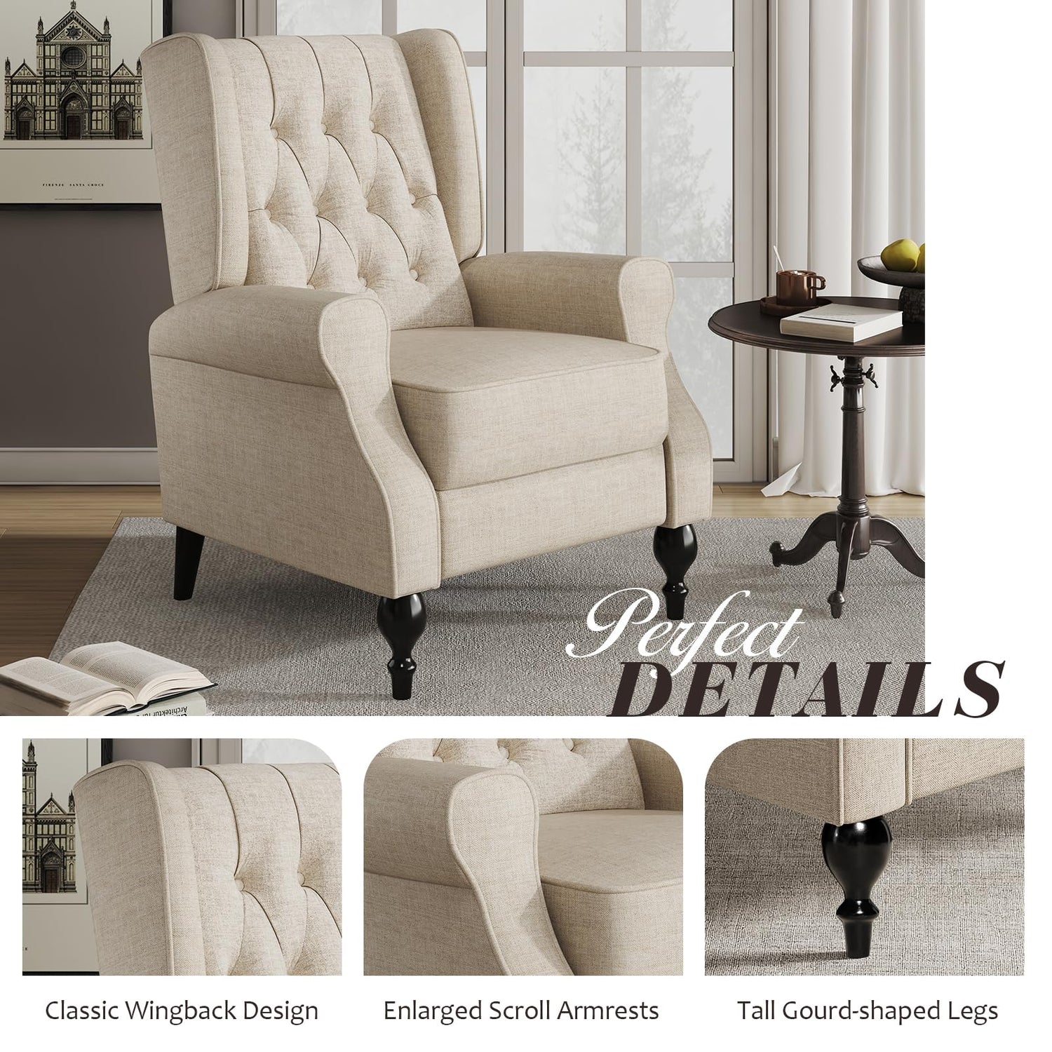 Jocisland Recliner Chair, Accent Wingback Chairs for Adults Living Room Bedroom, Small Tufted Push Back Club Single Sofa Armchair (Beige)