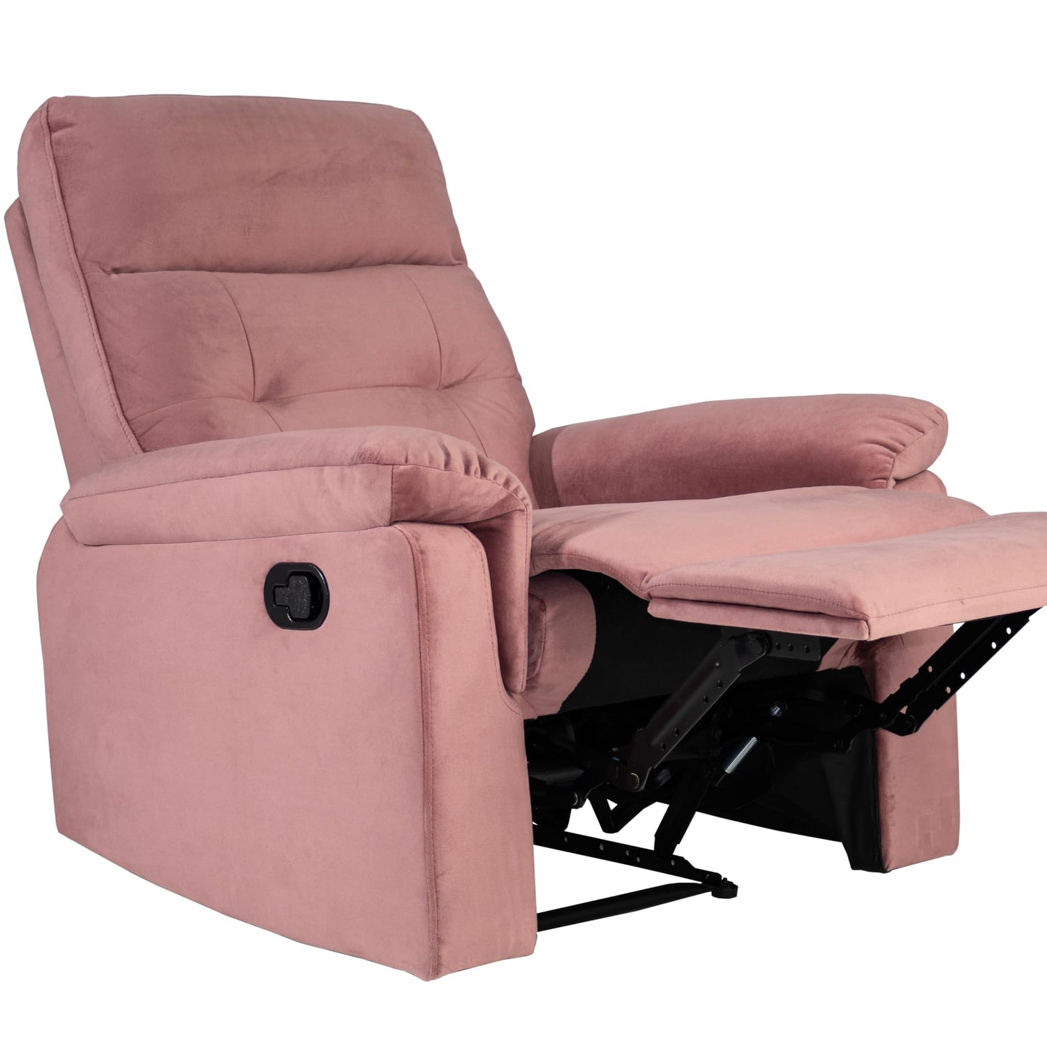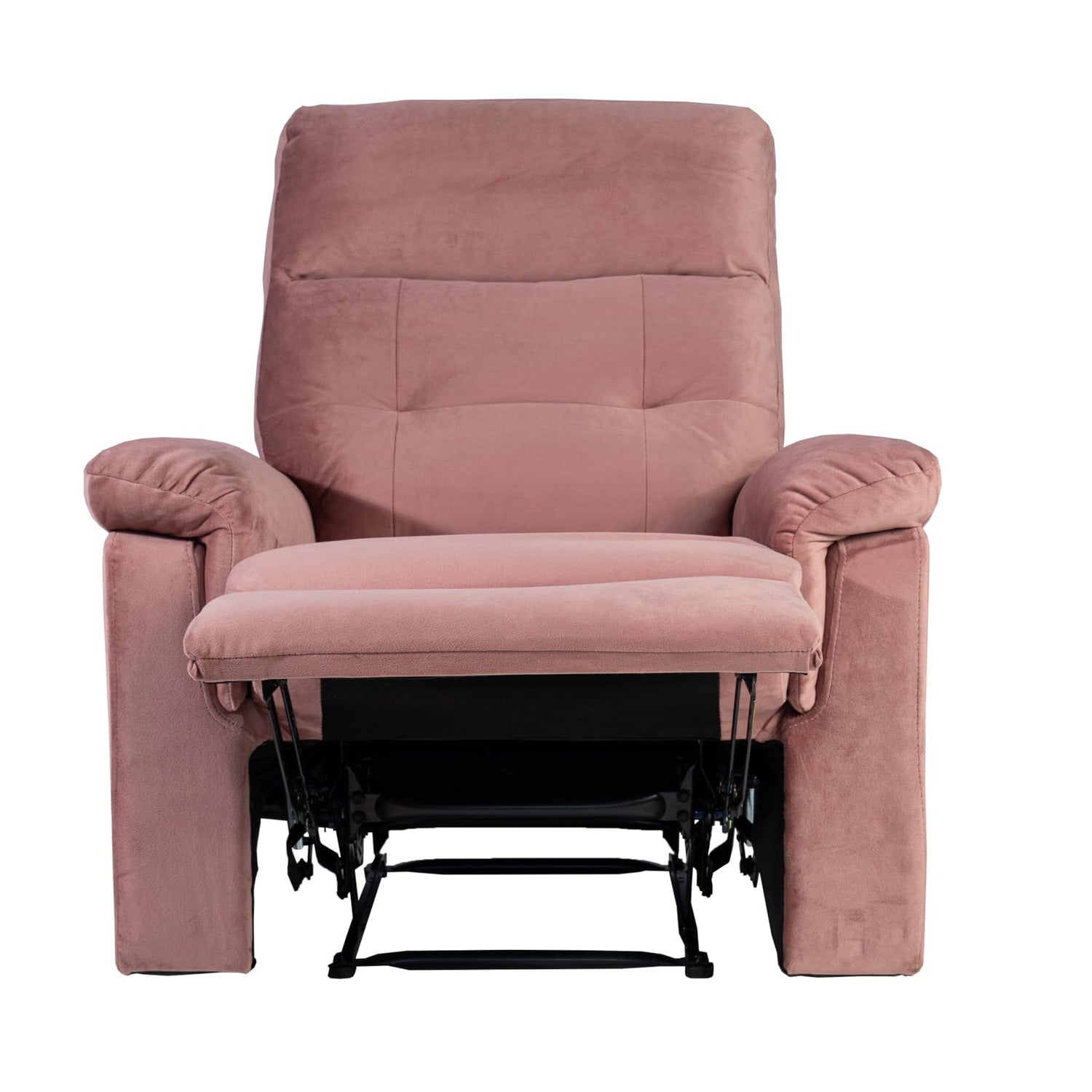 Luxury Velvet Manual Recliner Chair - Overstuffed Recliner with Tufted Back & Pillow Top Arms, Tuft Reclining Chairs with Adjustable Footrest, Mid Century Manual Recliners for Living Room (Pink)