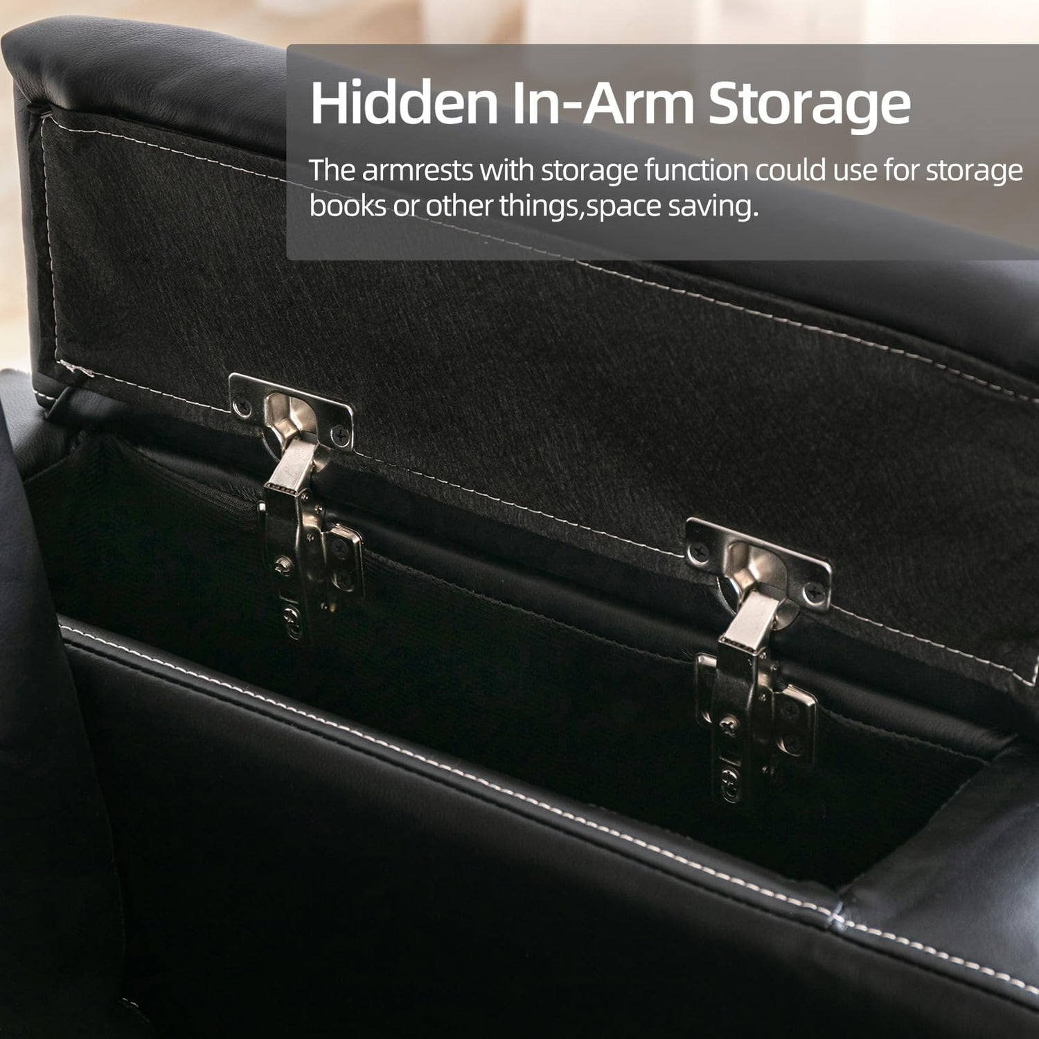 - Dual Cup Holders & Hidden Armrest Storage: Whether you are right handed, left handed, or just have a drink in each hand, your new recliner with cup holder has the perfect spot for your drinks. 2 built-in cup holders offer a supper theater experience at home. Armrest with storage function could use for storage books or other things, space saving.