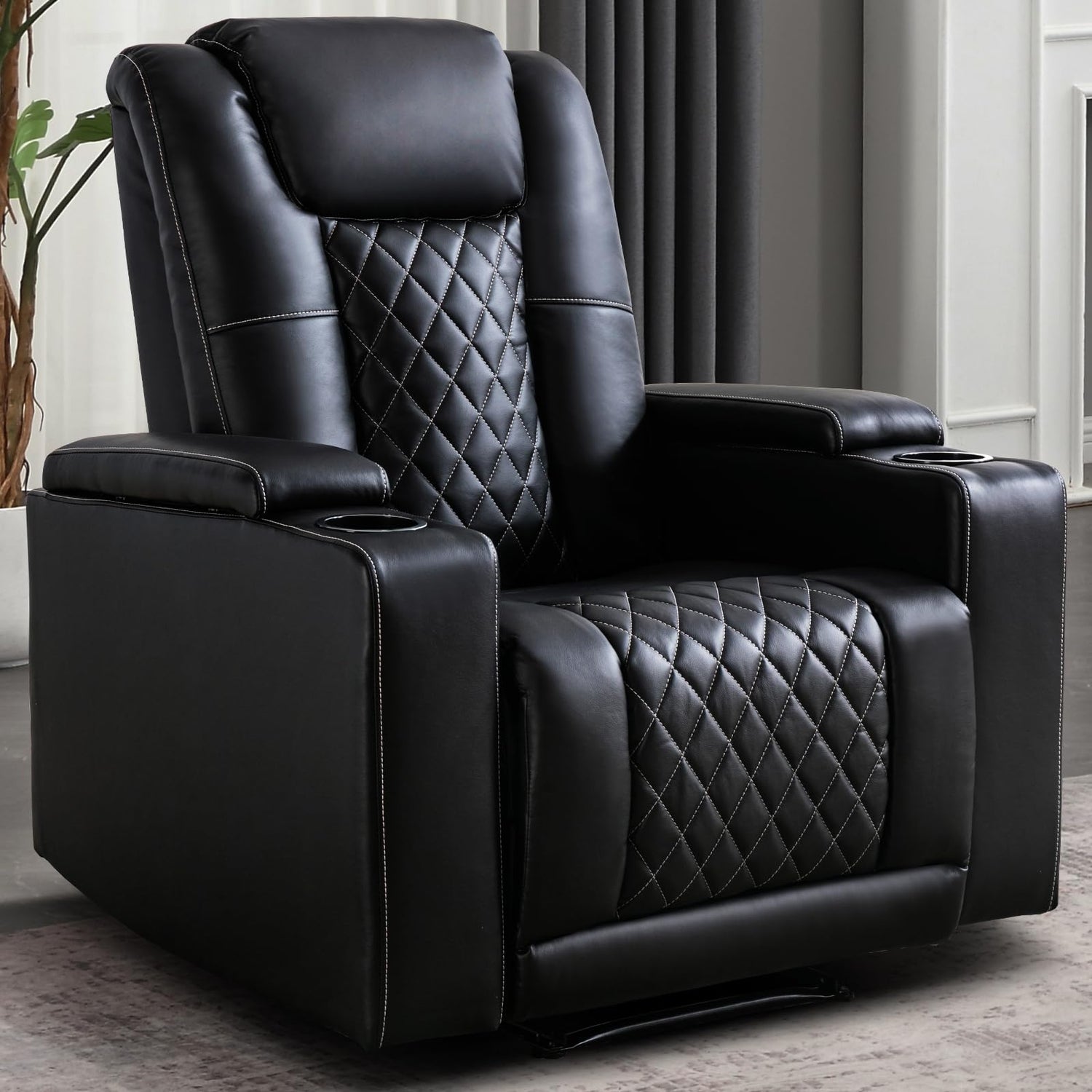 Modern Power Recliner Chair with Cup Holder Faux Leather Electric Reclining Chairs for Adults Movie Theater Chairs, Black