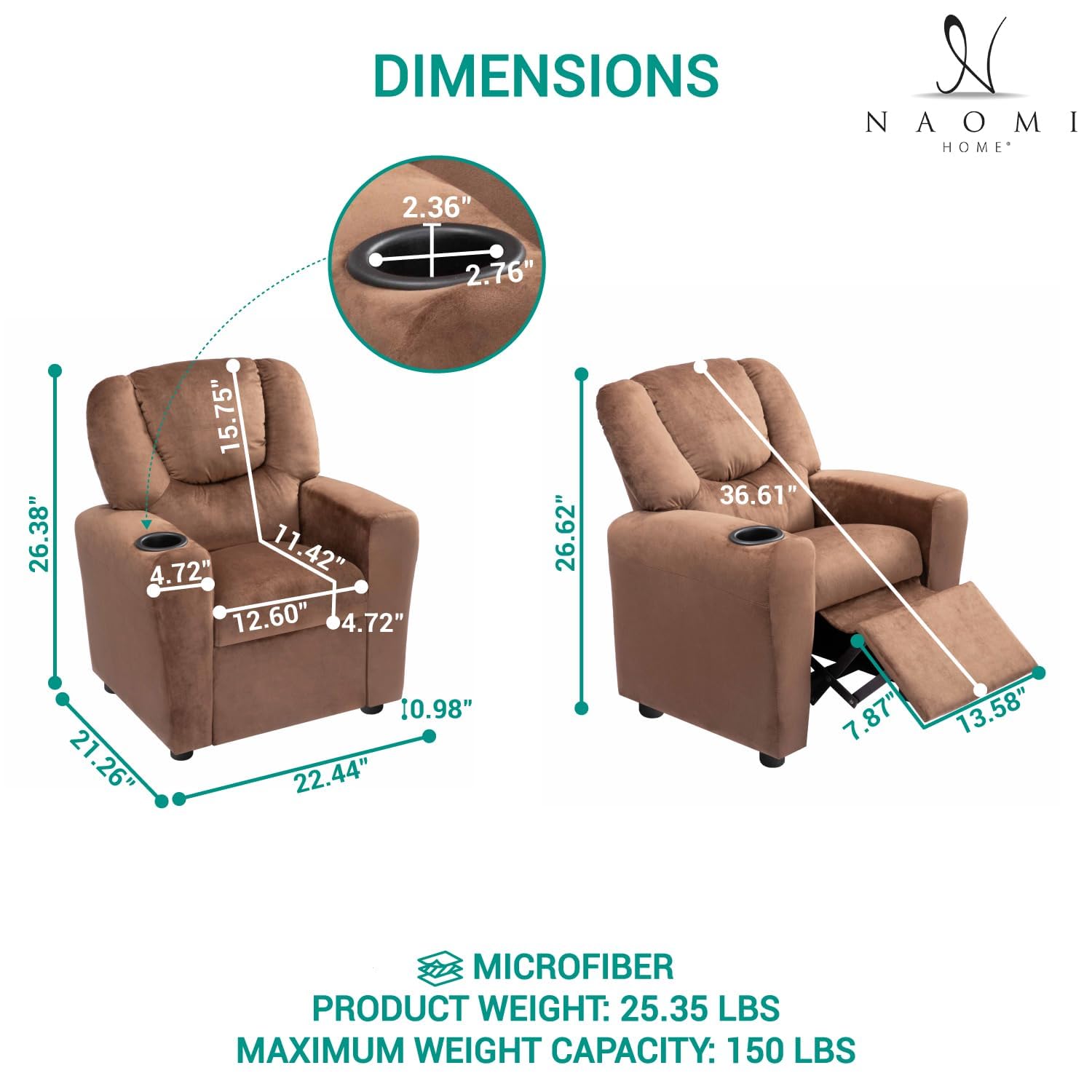 Naomi Home Suri Kids Recliner Chair with Cup Holder & Footrest, Brown Microfiber - Cozy Lounge for Toddlers & Children