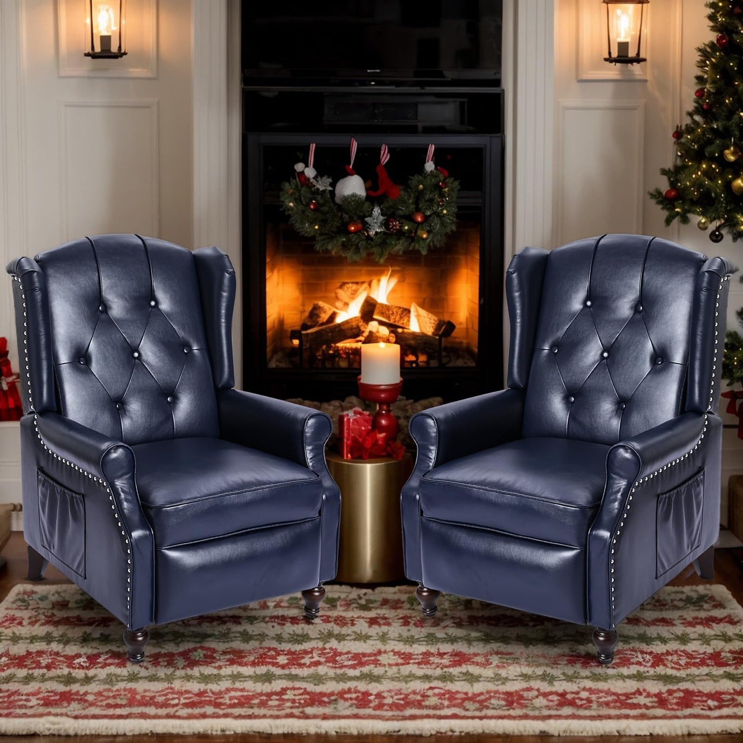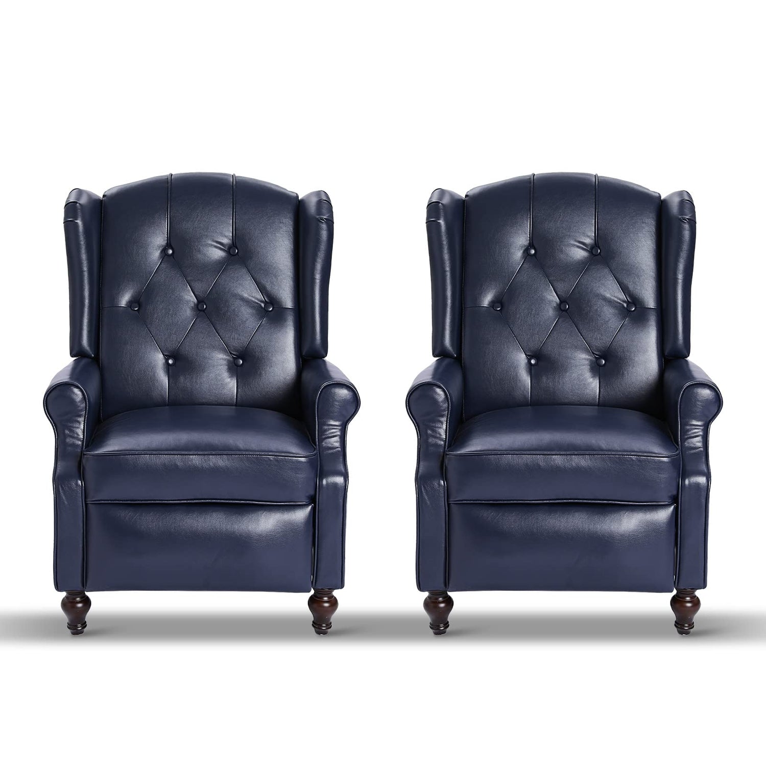 PALLOME Wingback Recliner Chair with Massage and Heat PU Leather Push Back Arm Chair, Recliner Chair for Living Room Bedroom Home Theater (2,Navy Blue)