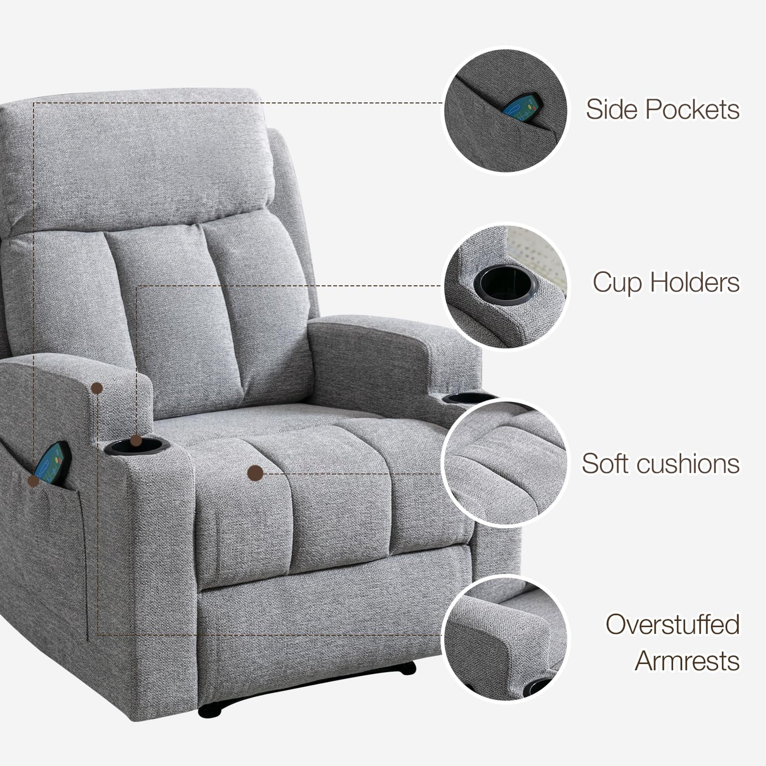 Details: Recliner Chair with assage and Heat Ergonomic Lounge Chair for Living Room Comfy Manual Recliner