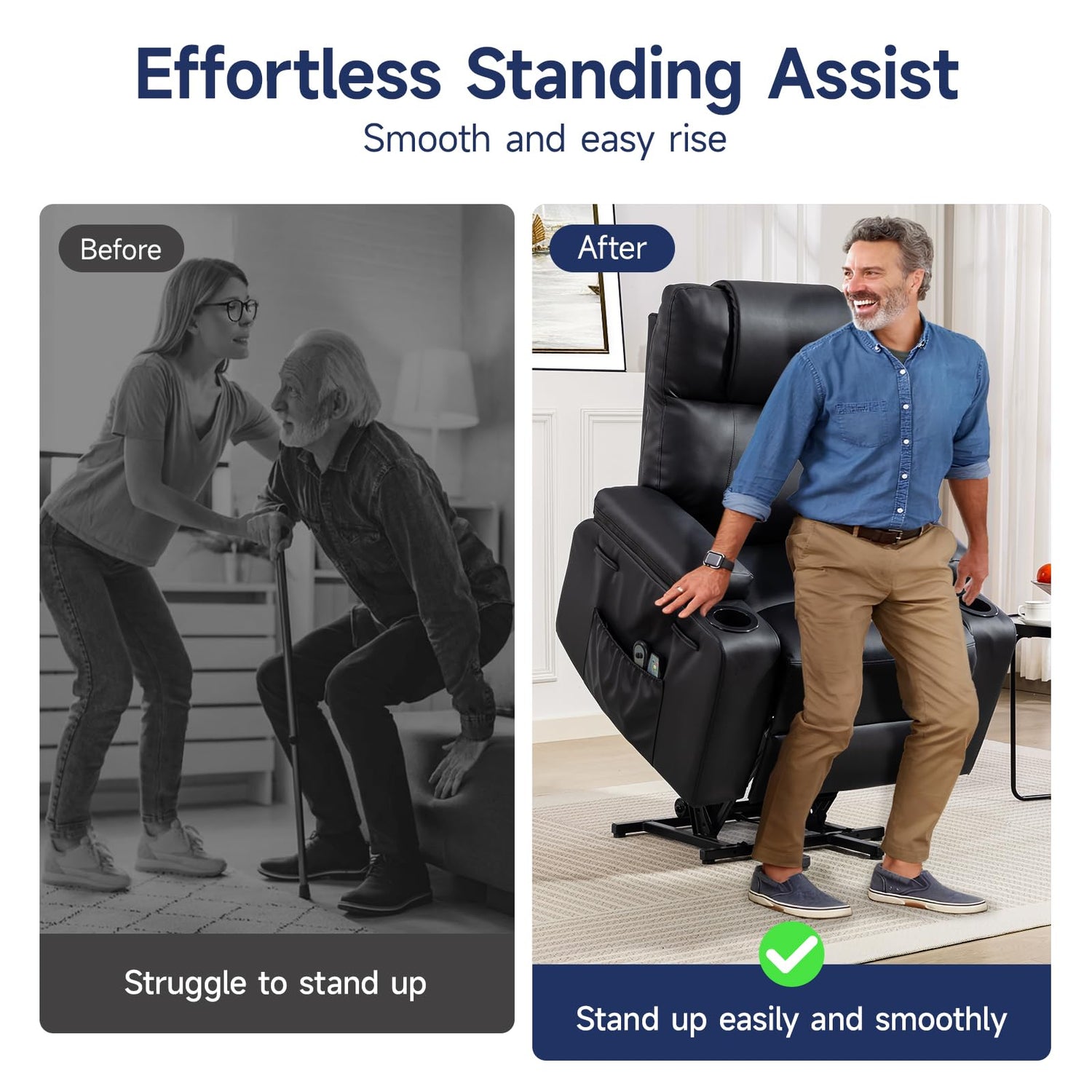 - 【Power Lift Recliner for Seniors – Easy Standing Assist】Equipped with a smooth and quiet electric lift mechanism, this power lift recliner chair helps seniors and people with limited mobility stand up effortlessly without straining knees or back. Ideal for seniors and designed for daily convenience.