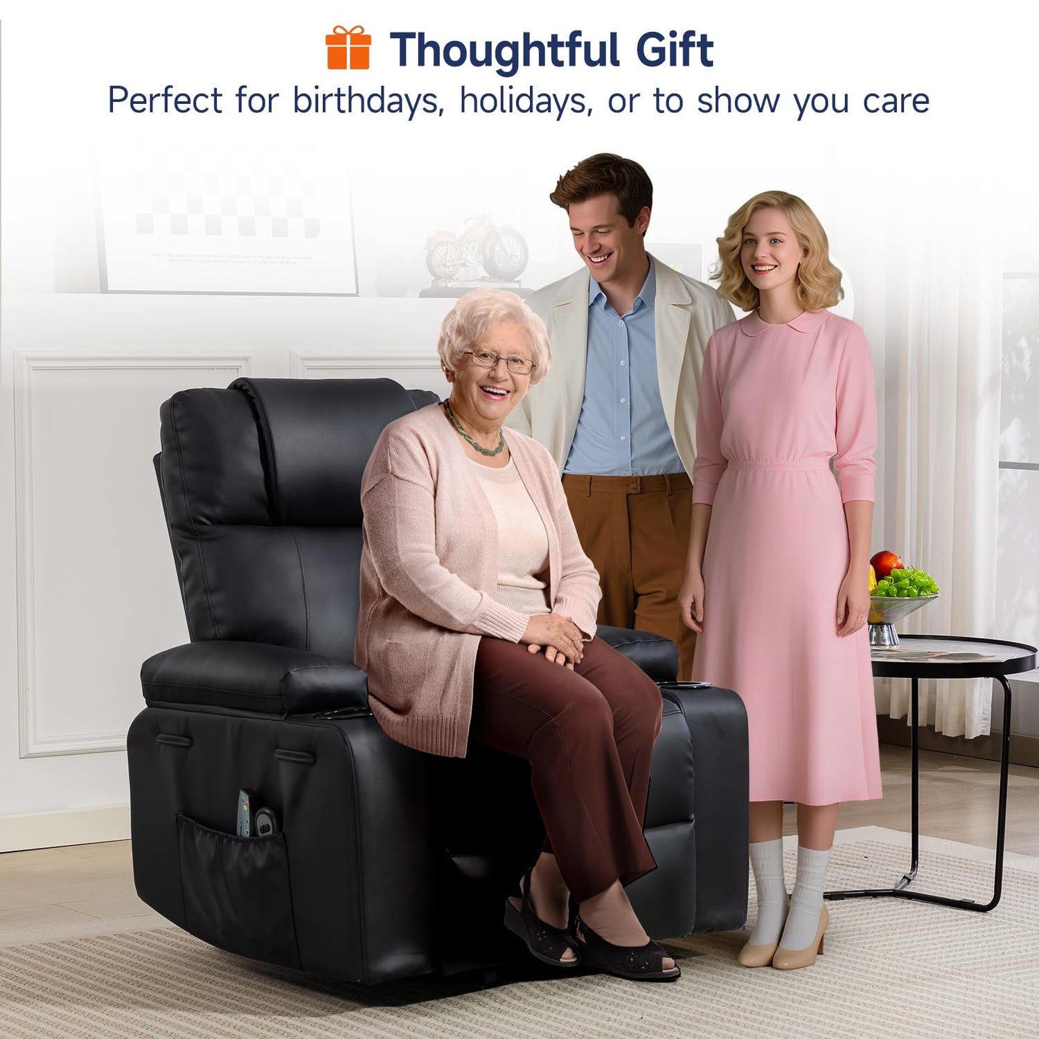 Power Lift Recliner Chair for Elderly with Massage & Heat, 160° Adjustable PU Leather Electric Recliner with Remote, Cup Holders, Side Pockets, and Stand Assist for Living Room, Bedroom (Black)