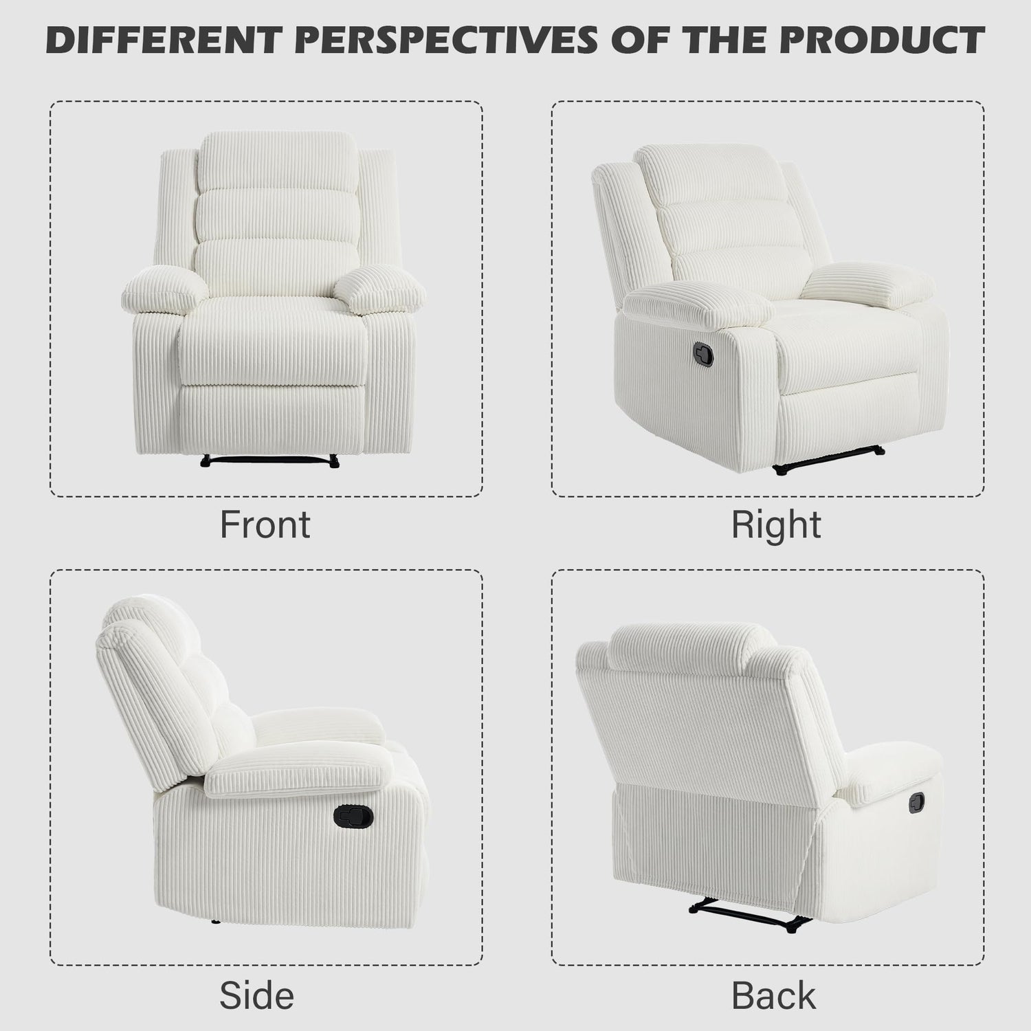 Details: Recliner Chair Corduroy Recliners Sofa with Armrests & Backrest for Living Room, Bedroom, Nursery Push Back Armchair for Adults (Beige, Set of 1)
