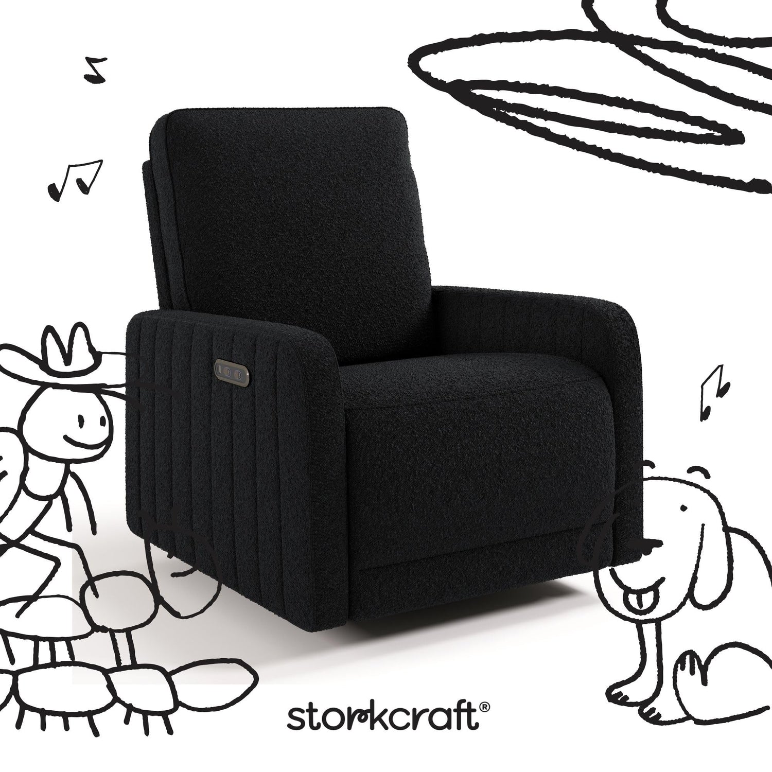 Storkcraft Kyoto Deluxe Extra-Wide Power Recliner Swivel Glider (Black Boucle) – Premium Electronic Power Recliner for Nursery, Includes Dual-USB Charging Port, Extra Wide Glider Rocking Chair