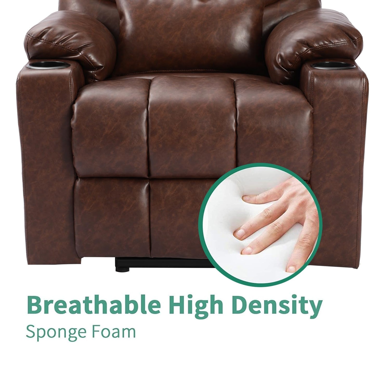 URRED Power Lift Recliners for Elderly, Electric Lift Chair with Massage and Heat, PU Leather Recliner Chair for Living Room (Brown)