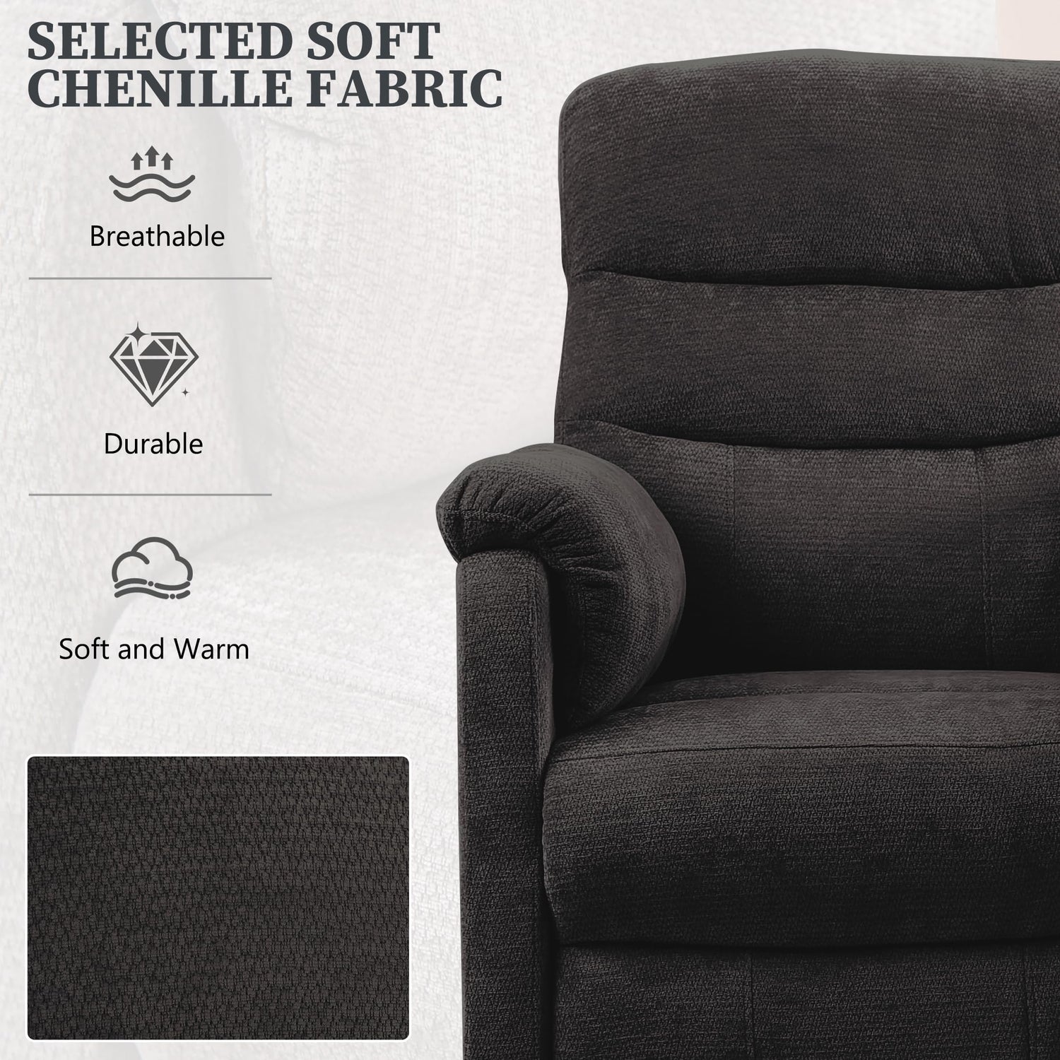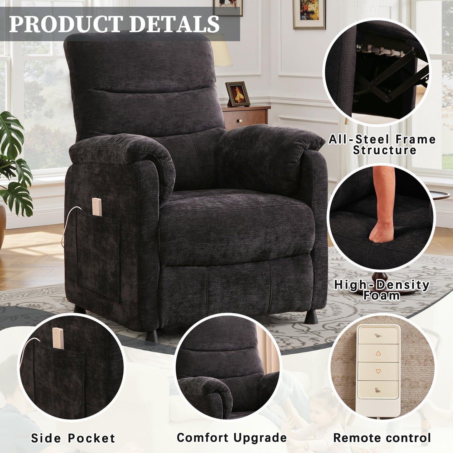 Veemuaro Electric Recliner Chair, Power Recliner Sofa with Remote, Adjustable Backrest and Side Pocket, 7-Zone Support, 350 LBS, Soft Chenille Fabric Armchair for Living Room Bedroom, Black