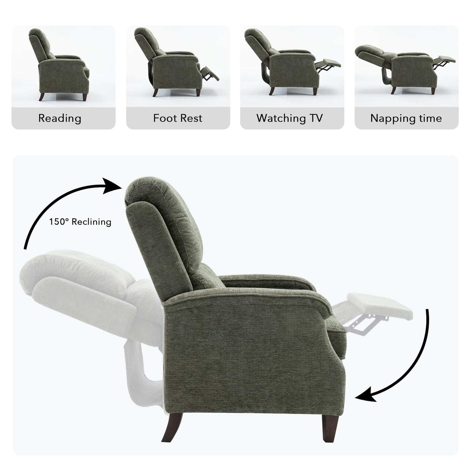 VKNOW Push Back Upholstered Recliner Chair Home Theater Seating Adjustable Modern Fabric Reclining Chair Padded Seat Backrest Recliner Sofa for Living Room (Green)