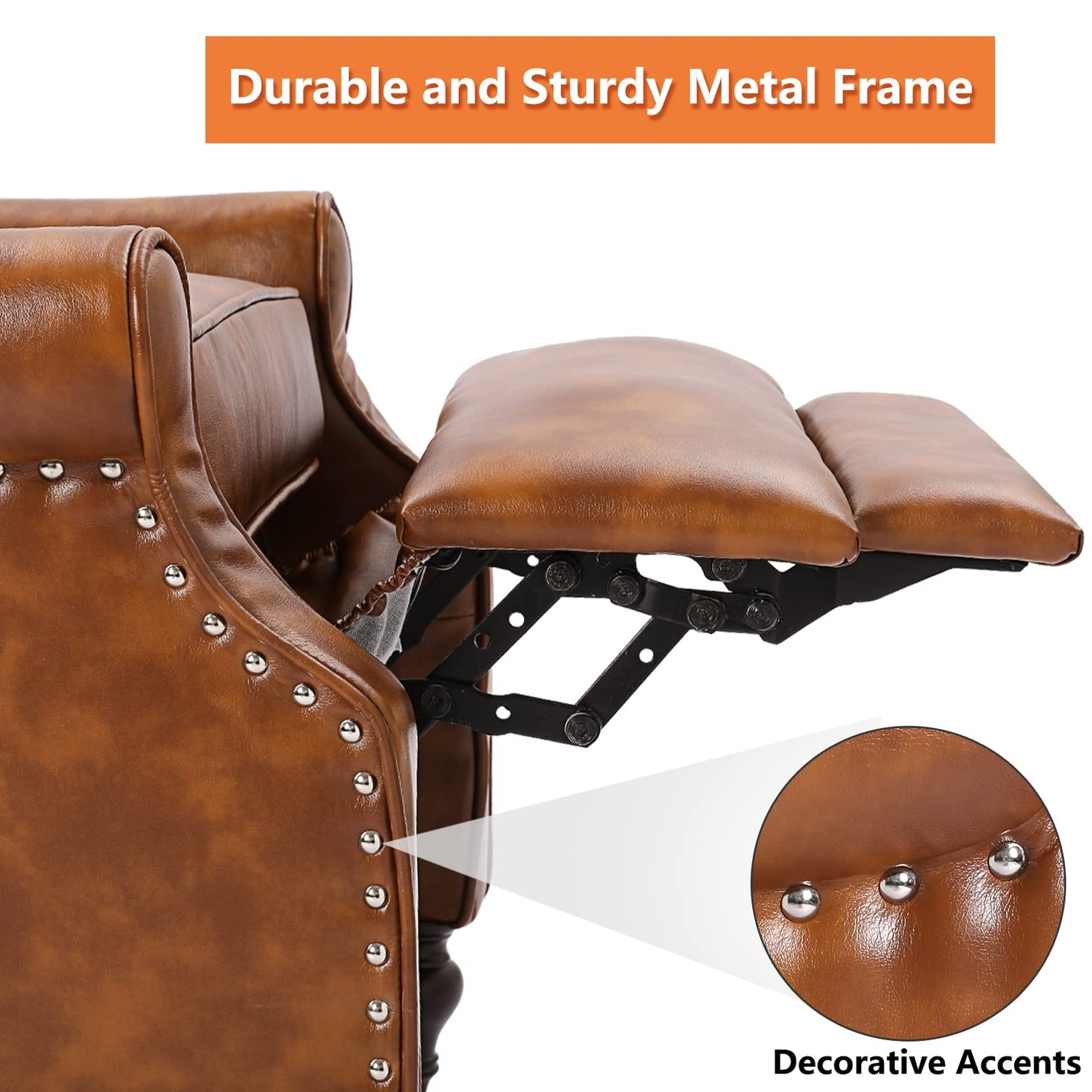 VUYUYU Wingback Recliner Chair, Push Back Arm Chair with Heat and Massage, PU Leather Single Sofa for Home, Living Room, Office, Bedroom(Cognac Brown,Set of 2)