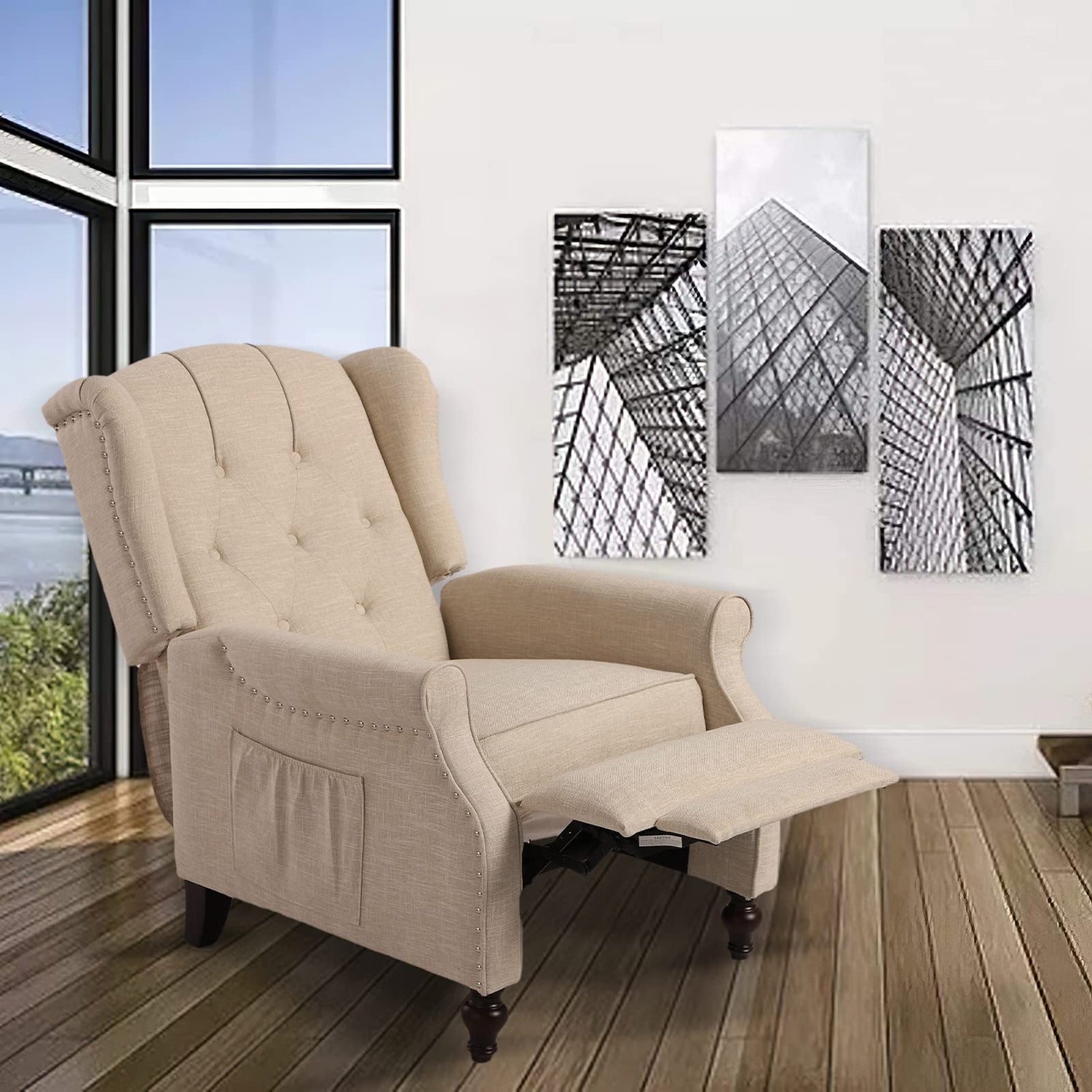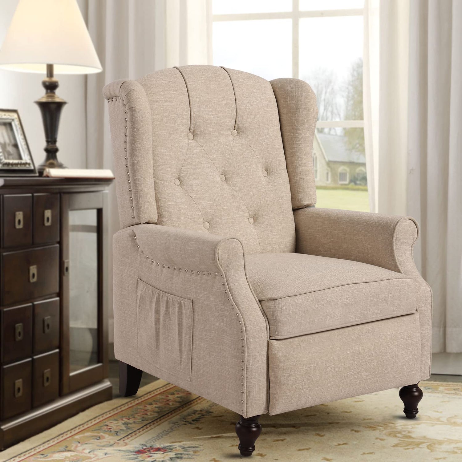 VUYUYU Wingback Recliner Chair, Push Back Arm Chair with Heat and Massage, Tufted Single Sofa for Home, Living Room, Office, Bedroom (Beige)