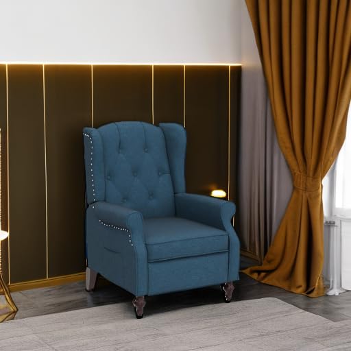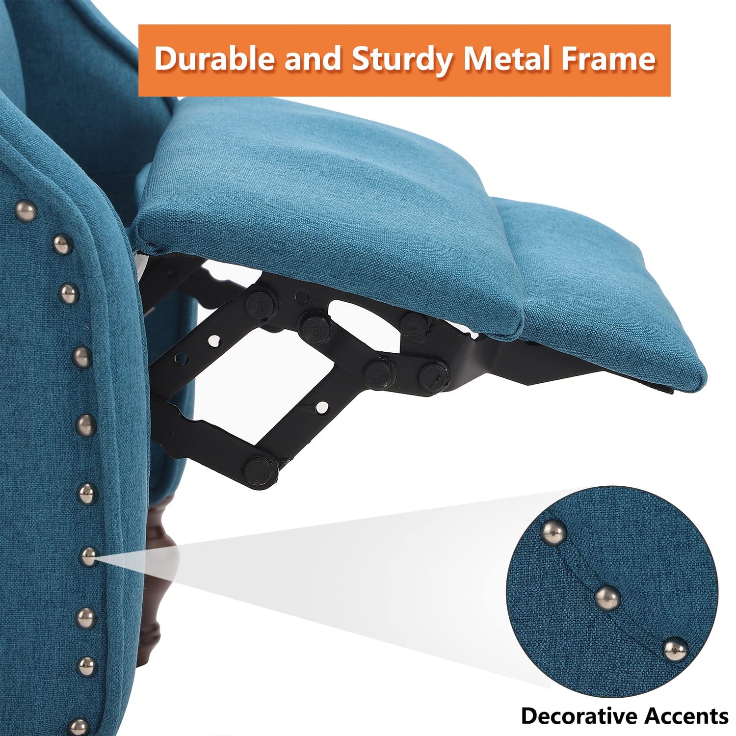 VUYUYU Wingback Recliner Chair, Push Back Arm Chair with Heat and Massage, Tufted Single Sofa for Home, Living Room, Office, Bedroom (Blue)