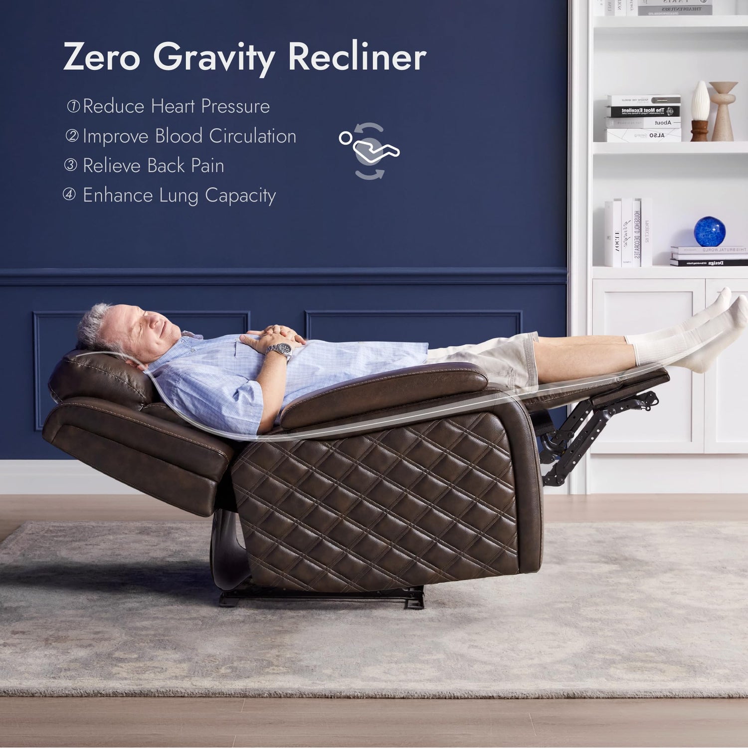 - Zero Gravity Recliner: This electric recliner chairs is ergonomically designed to evenly distribute your body weight, reducing pressure points and providing superior comfort. It mimics the position astronauts assume during liftoff on space missions. When fully reclined, your legs are elevated slightly above your heart, creating a sensation of weightlessness. This position reduces heart pressure, improves blood circulation, relieves back pain, and enhances lung capacity