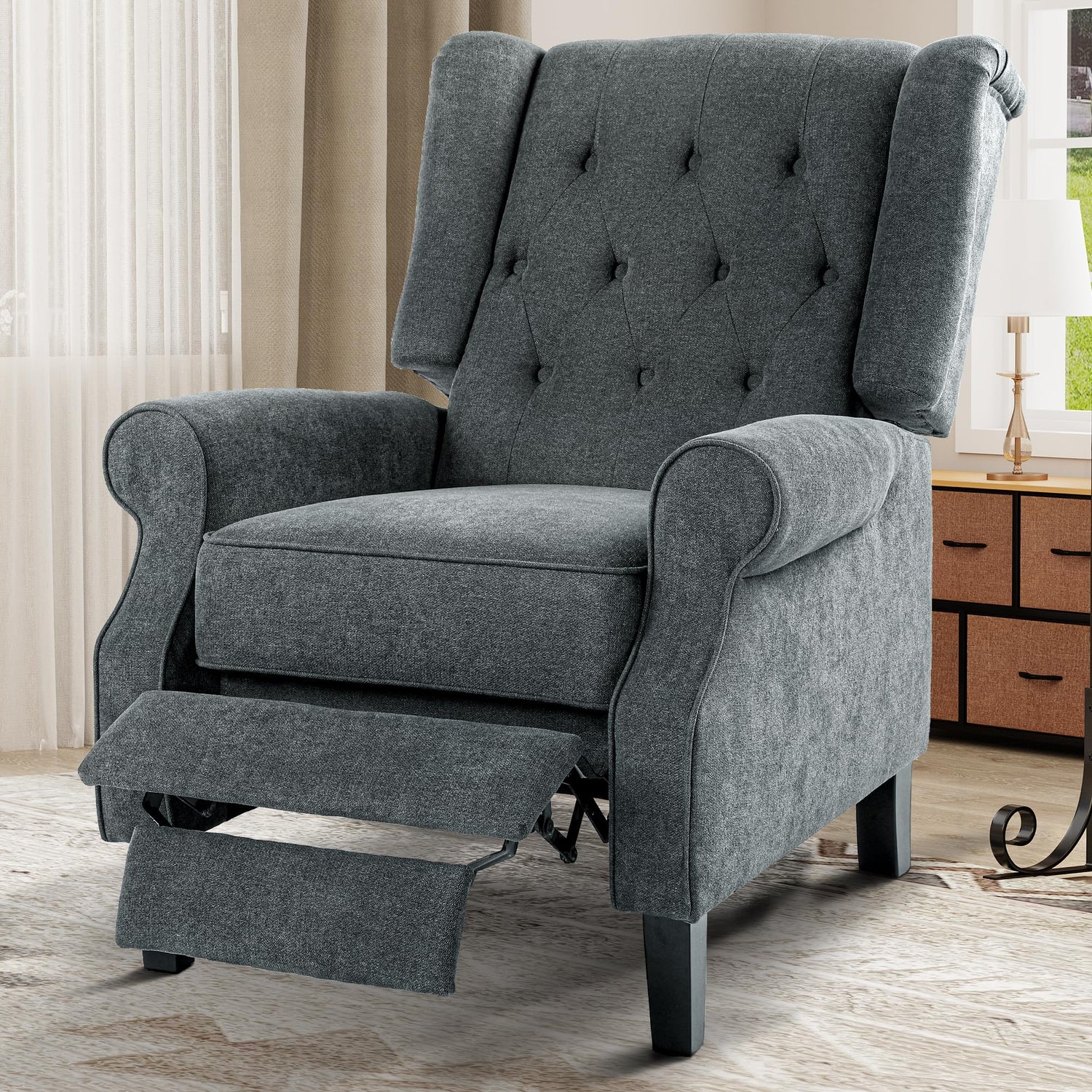 YITAHOME Wingback Push Back Recliner Chair, Modern Accent Arm Chair, Comfy Fabric Upholstered Tufted Accent Lounge Chair for Living Room/Bedroom/Office, Solid Wood Legs, Grey