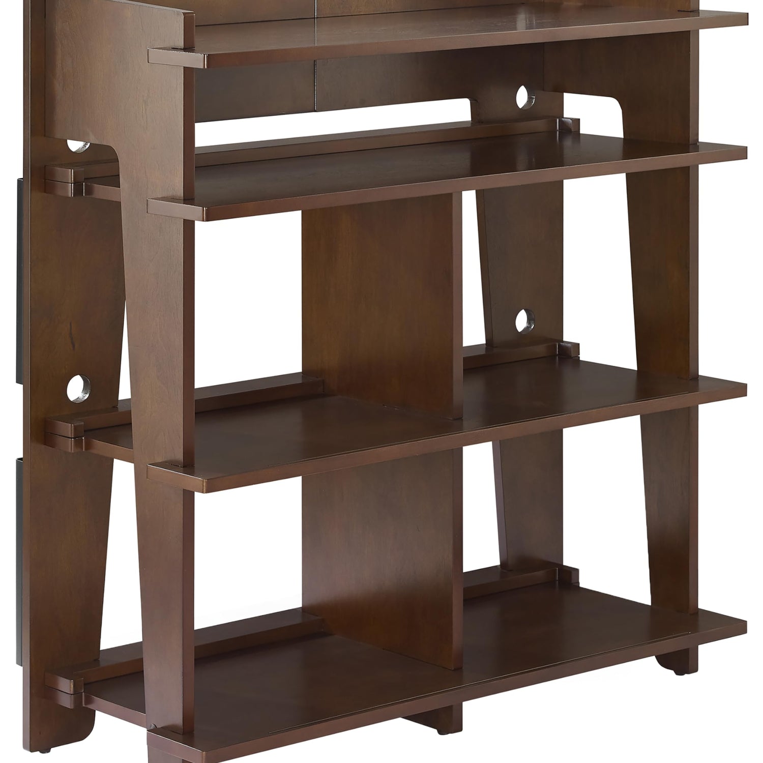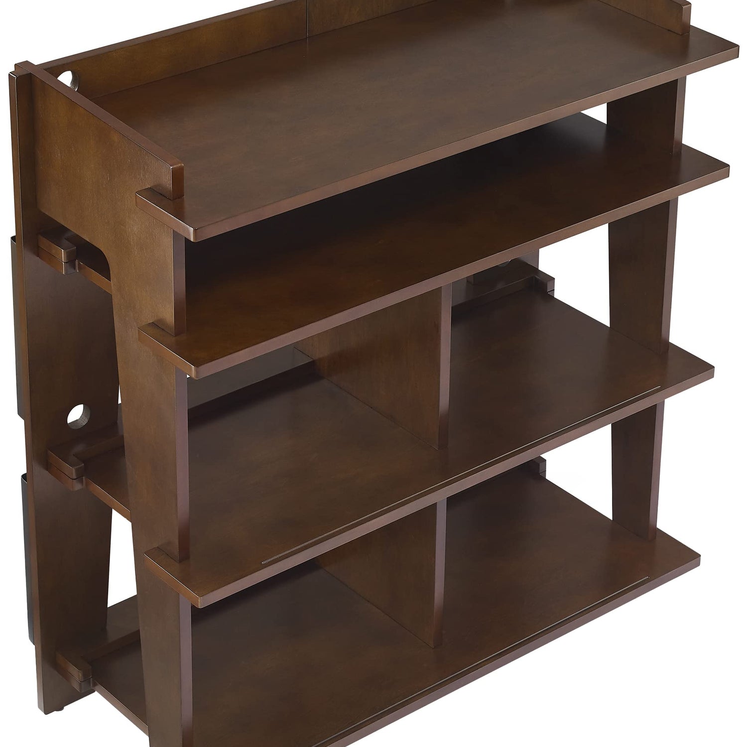 - Lower vinyl storage shelves have grooves in front for displaying the record jackets; Adjustable levelers on legs