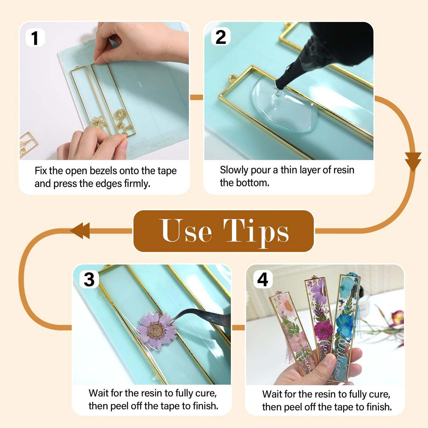 - Effortless Bookmarks DIY with Tassels: Create dazzling bookmarks with these resin bookmark molds in minutes! Fill the bezels with UV resin, add glitter or dried flowers, then cure under UV light. The set comes with tassels and pre-punched holes, eliminating tedious prep work